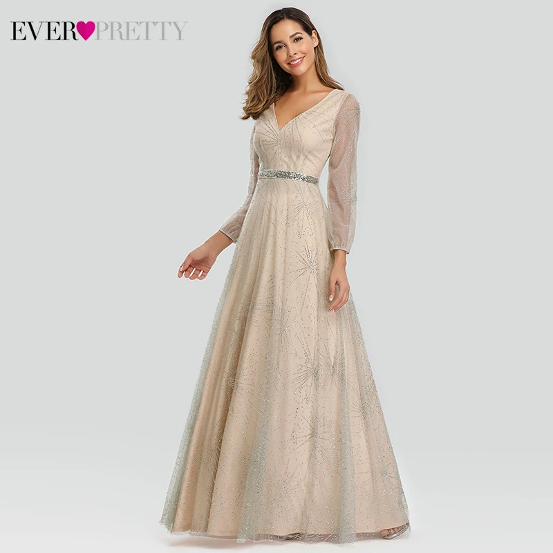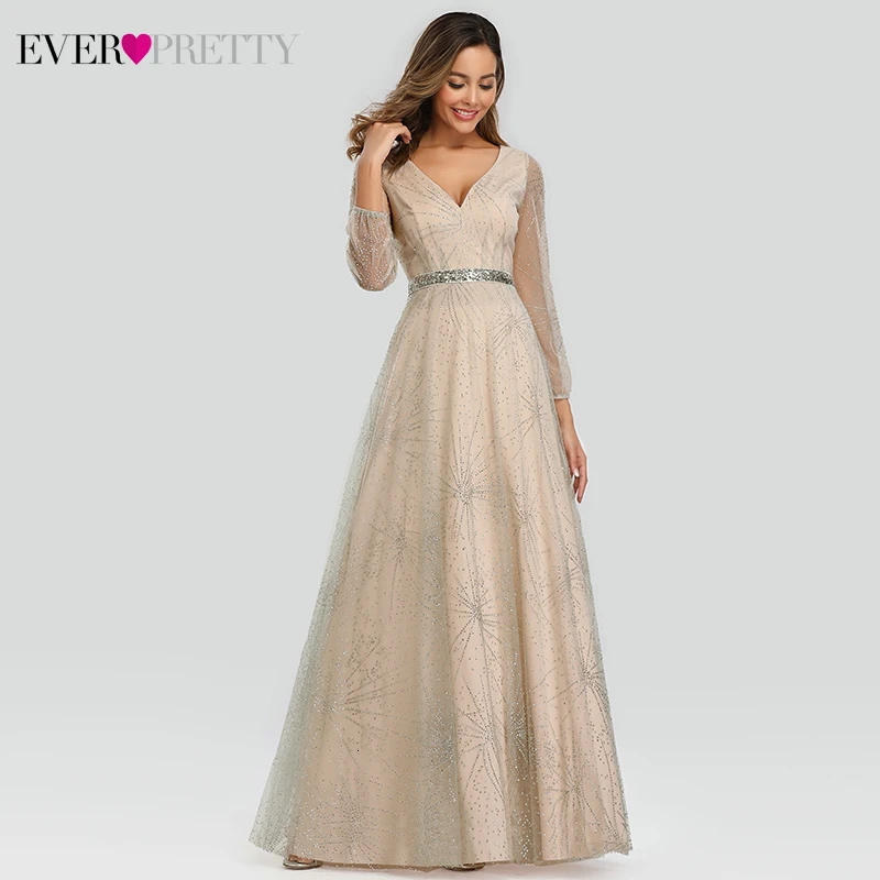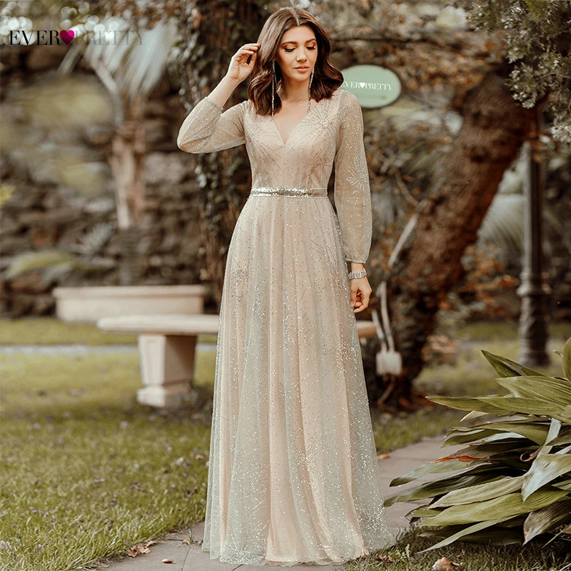 Женское вечернее платье с длинным рукавом, элегантное серое длинное ТРАПЕЦИЕВИДНОЕ ПЛАТЬЕ С v-образным вырезом и длинным рукавом, вечерние платья из Дубая