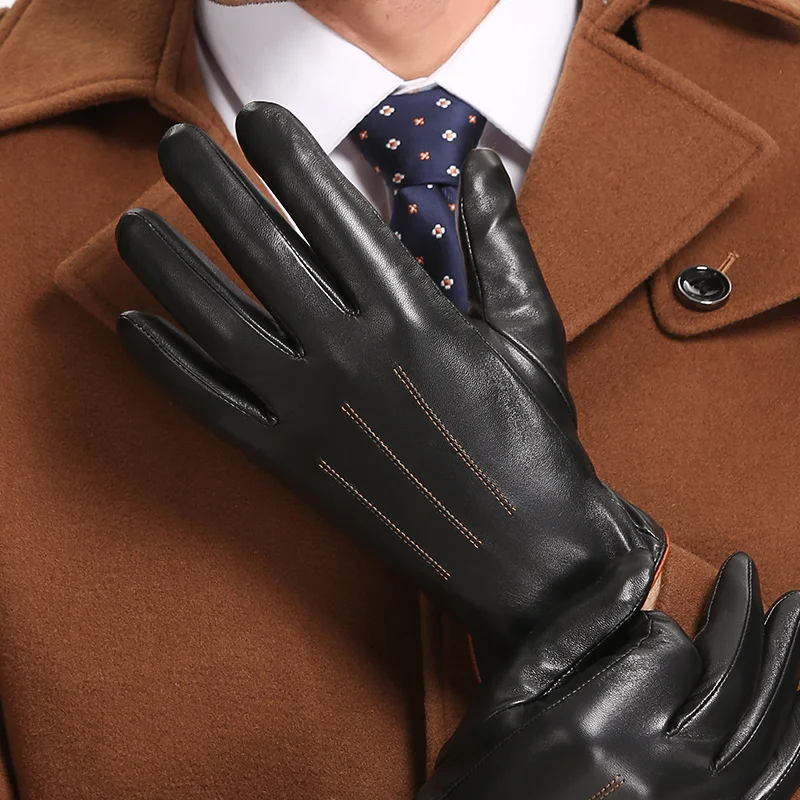 Перчатки мужские из натуральной кожи, зимние, черные, теплые, для сенсорного экрана, 2020