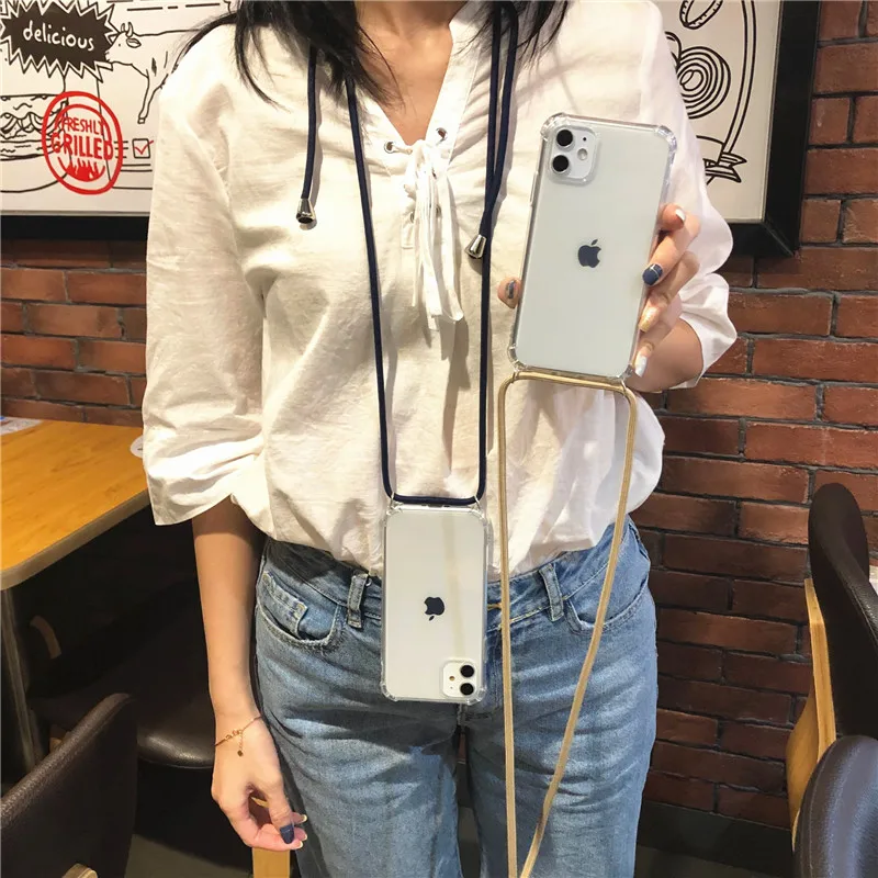 Чехол для iPhone 11, ожерелье, ремешок на плечо, шнур, прозрачный м...