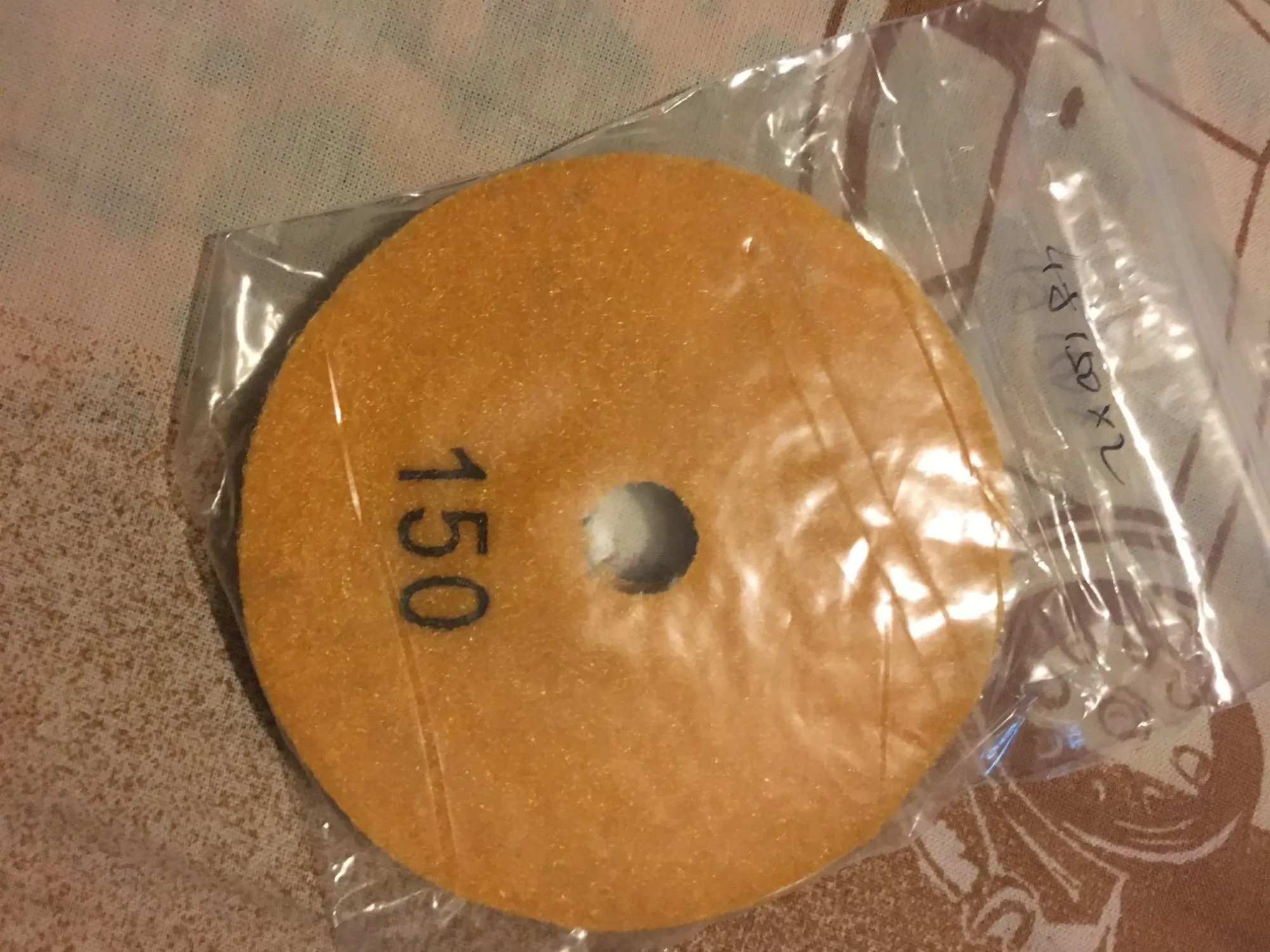 Доставлено за две недели. Соединил с насадкой для наждачной бымаги диаметром 125мм., ранее купленной в хозяйственном магазине. Липучка держит не плохо. Ногтем попробовал зернистость: трехсотка шершавая, а стопятидесятка гладкая.. Попробую сглаживать острые края у керамогранита после плиткореза.