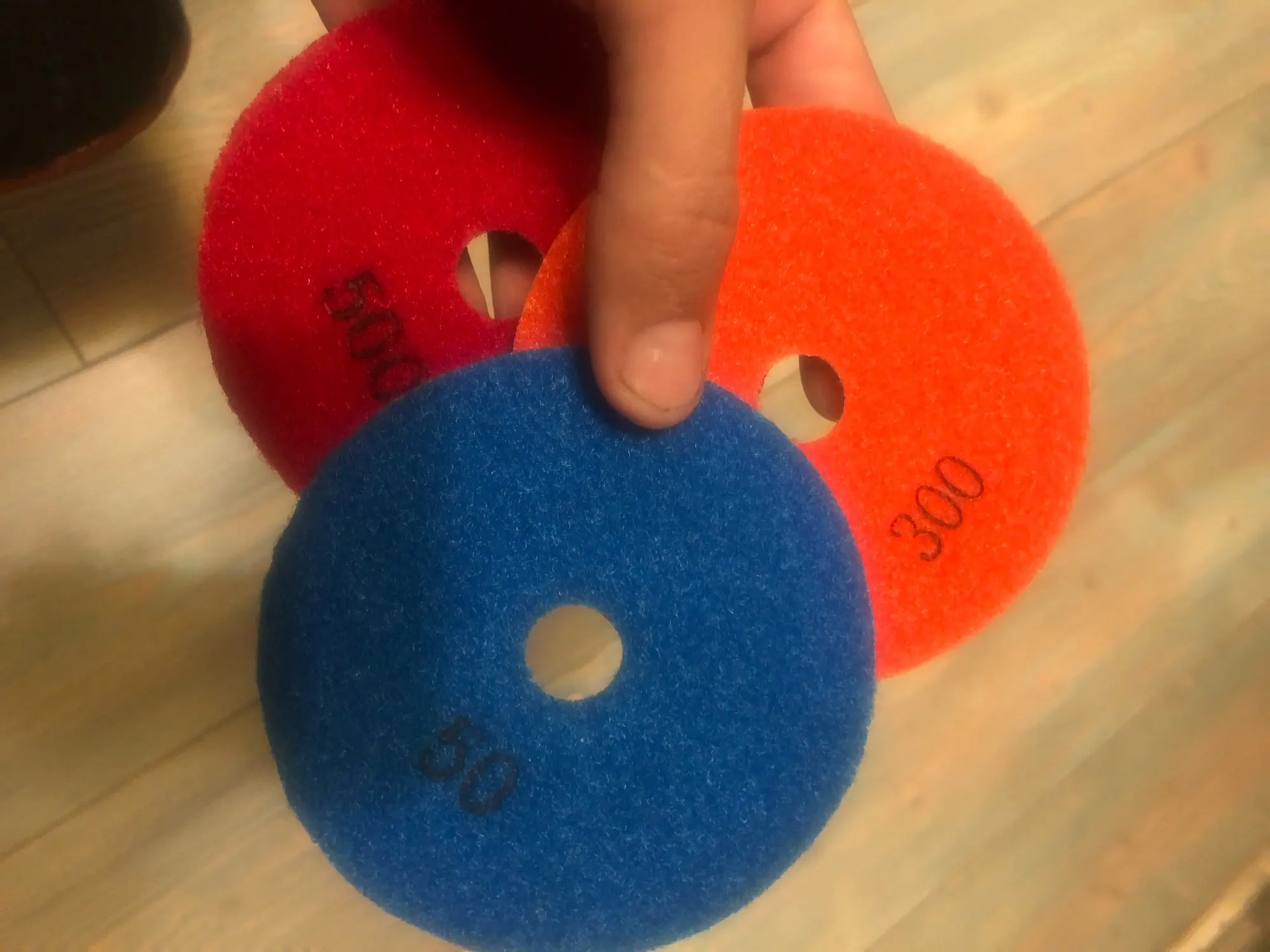 Диски можно спокойно покупать. Полностью стоят своих денег. Проверил на керамограните, все отлично.100 фаску снимает отлично, 300 заполировывает очень хорошо. А самое здесь главное, что стоят кружочки по сравнению с магазинами в РБ копейки. Рекомендую.