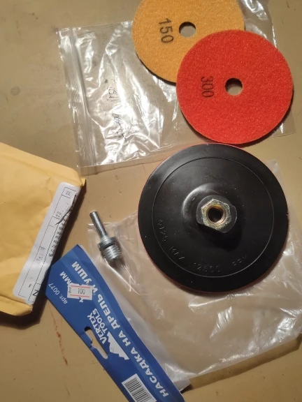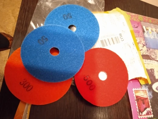 Качественные черепашки для шлифования кафельной плитки. Взял по одной на пробу на 100, 150, 300. И штуку присоску на которую они крепятся на липы. Лучше для каждой черепашки использовать отдельную липучку, т. к. от частой смены насадок качество сцепления лип ухудшится.