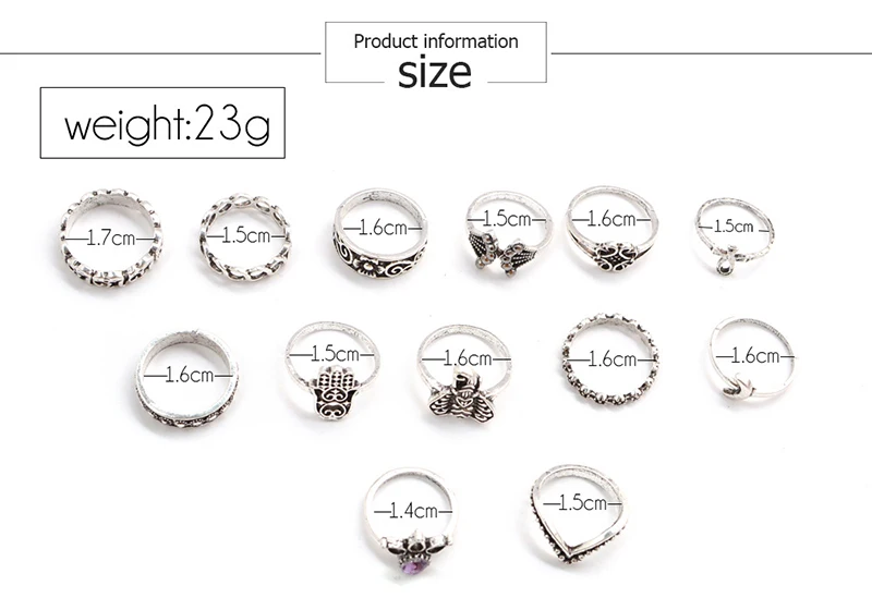 Женский набор колец на фаланги пальцев, богемный набор колец с кристаллами, в форме слона, короны, полумесяца, геометрические украшения, 20 видов стилей