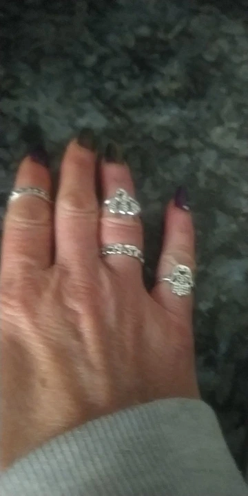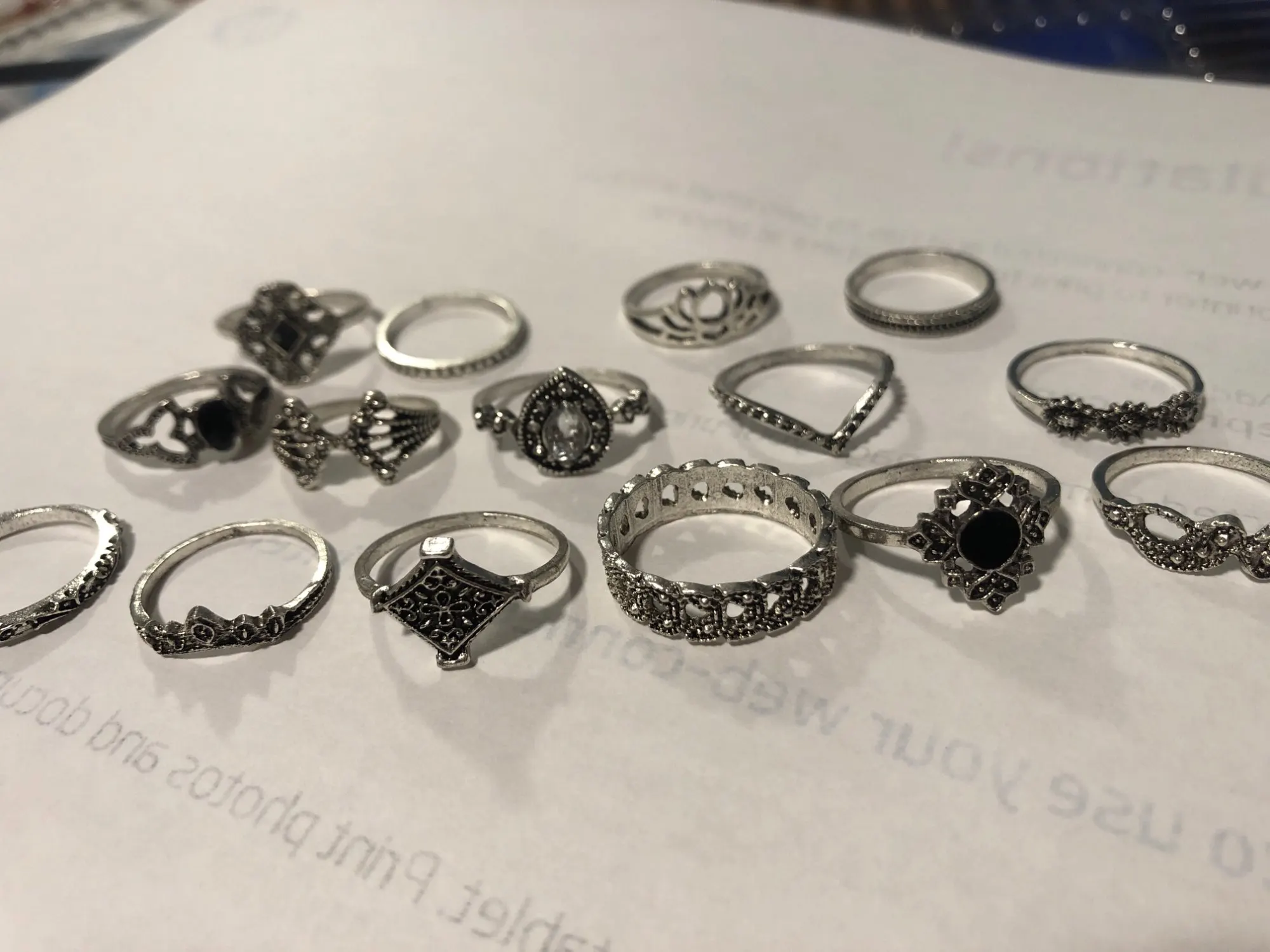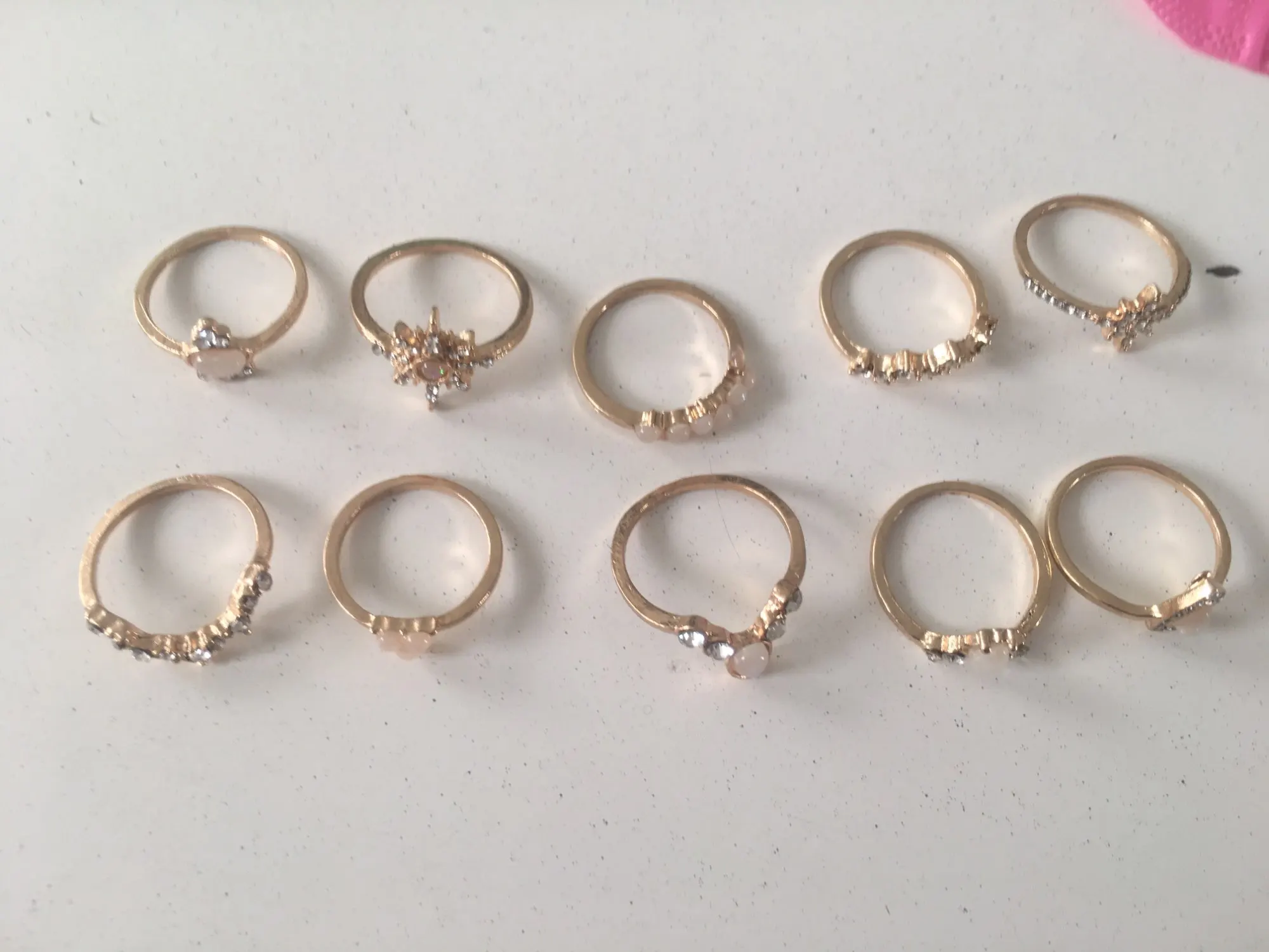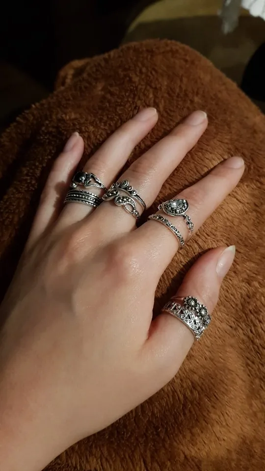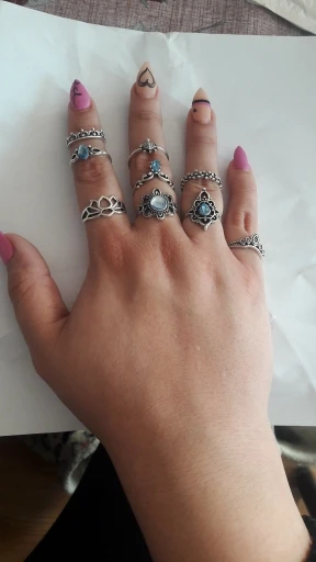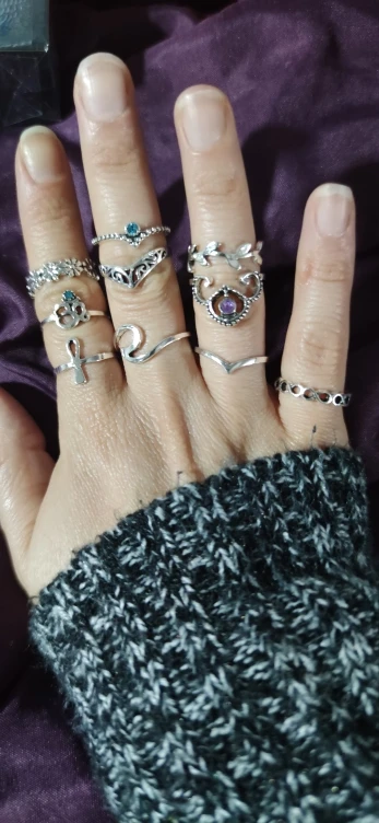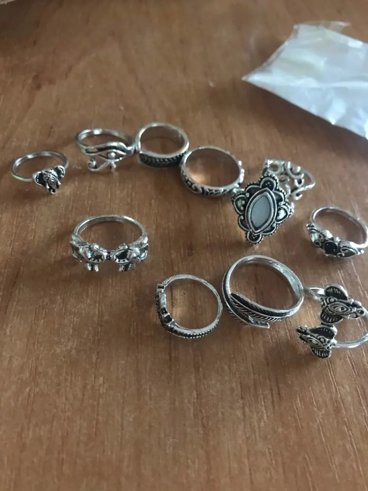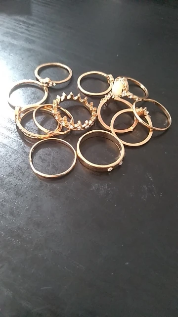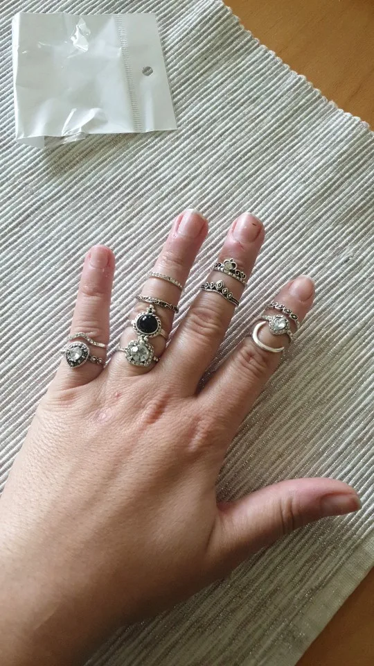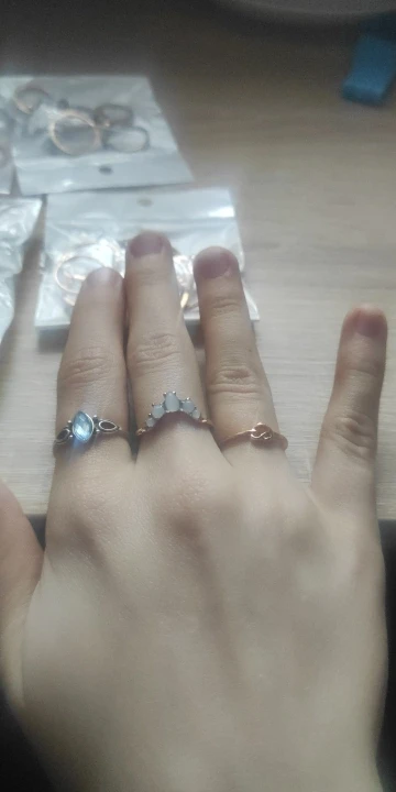 Все кольца соответствуют описанию. Некоторые немного отличаются от изображений, но все в порядке. Я не знаю, из какого материала сделаны «Камни», но они кажутся очень дешевыми. Один из них был поврежден, и он кажется резиновым и странным. Цена низкая, поэтому я не разочарован. Доставка занимает около полутора месяцев. Мои пальцы слишком тонкие, поэтому мне придется отрегулировать некоторые кольца