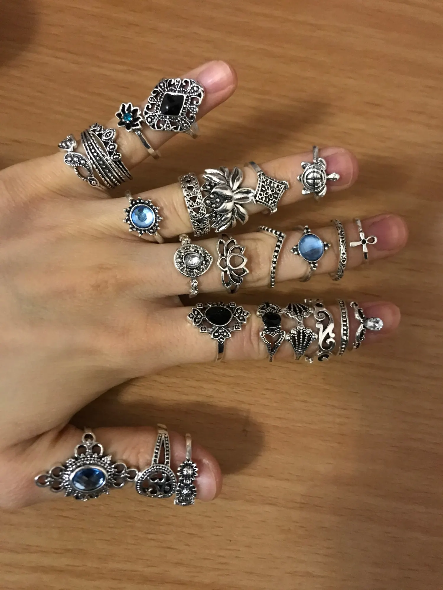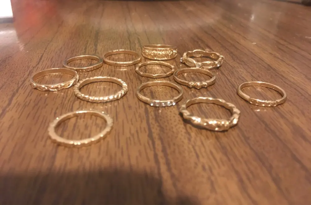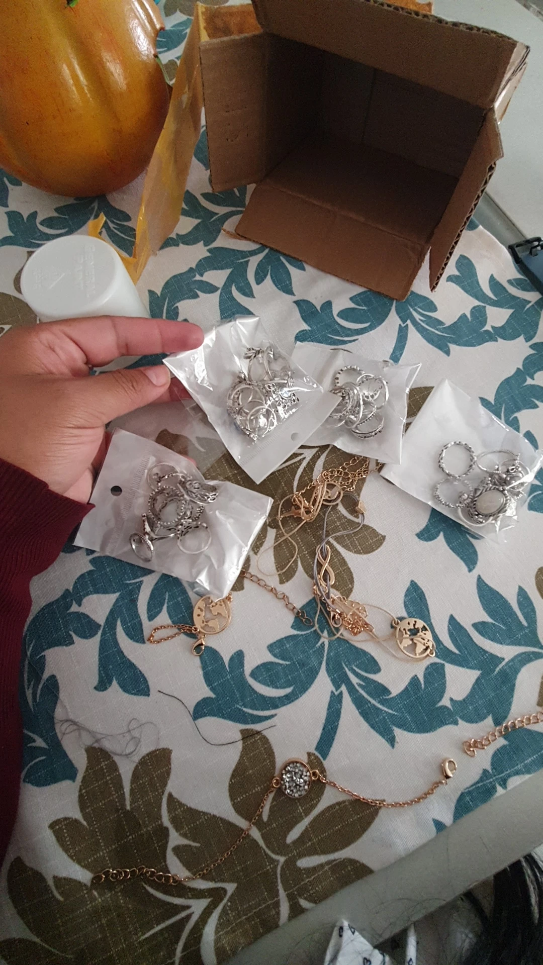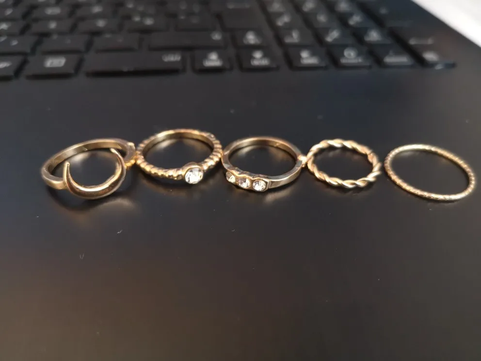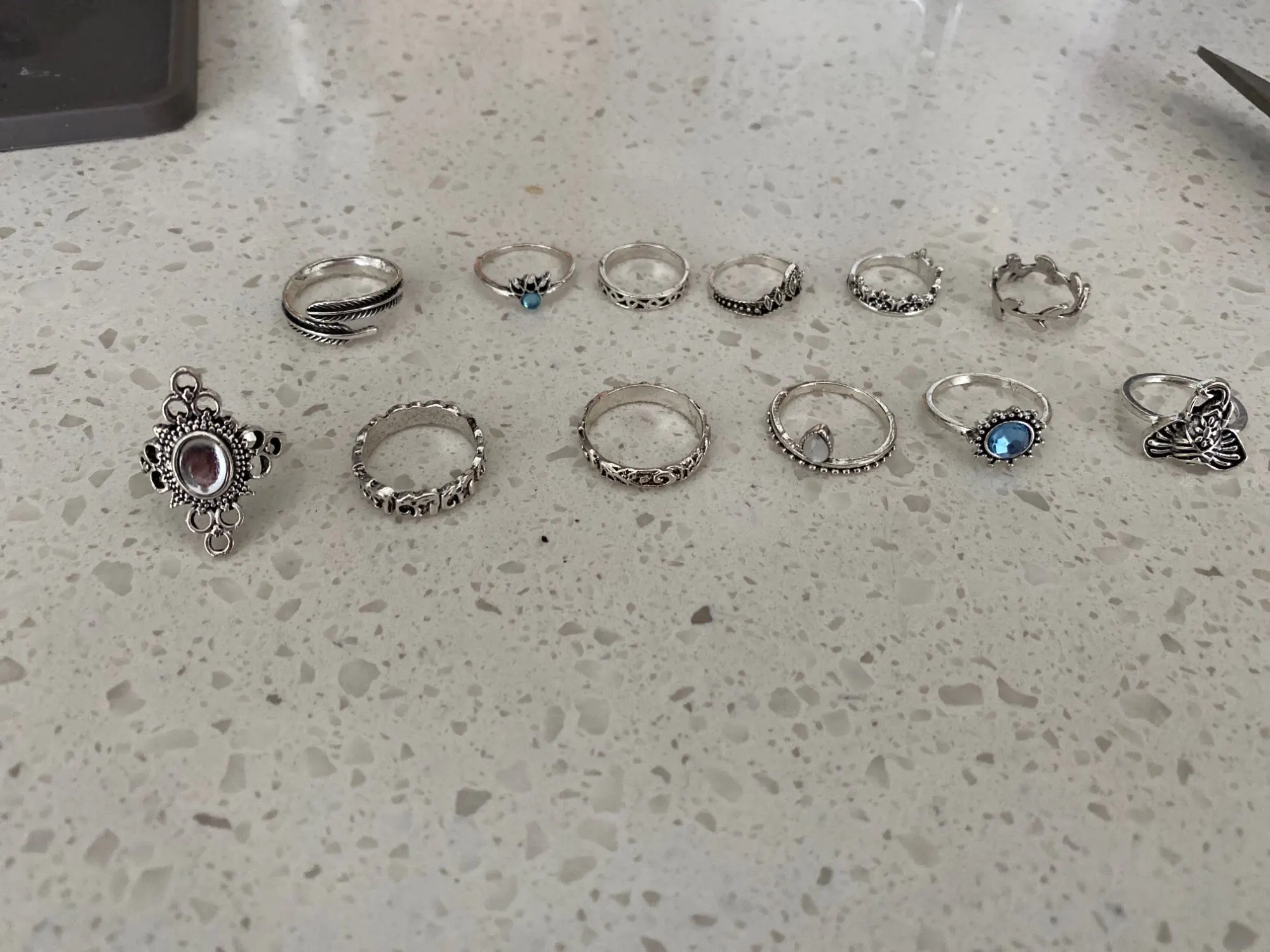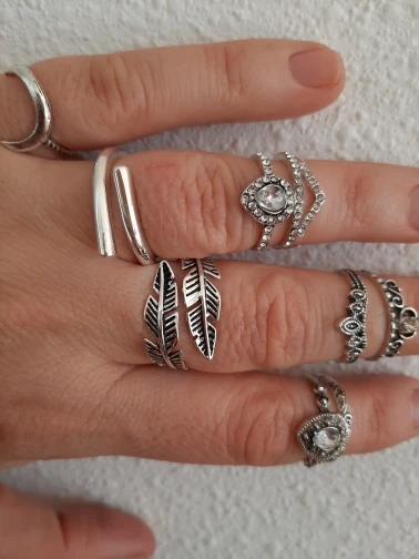 Все кольца соответствуют описанию. Некоторые немного отличаются от изображений, но все в порядке. Я не знаю, из какого материала сделаны «Камни», но они кажутся очень дешевыми. Один из них был поврежден, и он кажется резиновым и странным. Цена низкая, поэтому я не разочарован. Доставка занимает около полутора месяцев. Мои пальцы слишком тонкие, поэтому мне придется отрегулировать некоторые кольца
