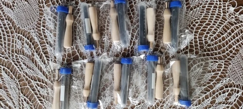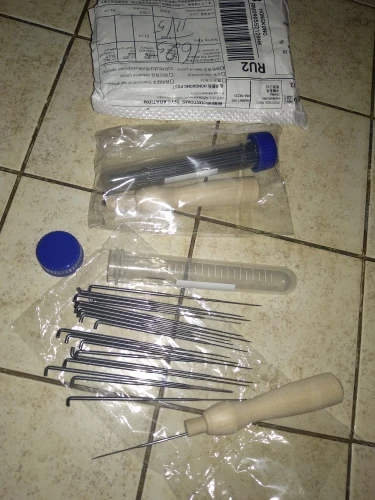 Очень рекомендую эти иглы для валяния. Очень понравились. Шли, правда, 1,5 месяца и посылка не отслеживалась. На втором фото сфотографировано два держателя для игл. Справа, старый дорогой держатель, видно, что он не надёжный, быстро треснул и вышел из строя. Слева, новый, куплен у этого продавца. Очень удобный и прочный. Чуть больше дорогого, удобно им пользоваться. Рекомендую и продавца и товар.