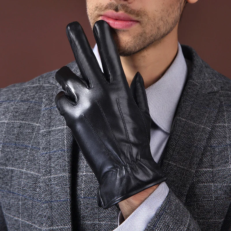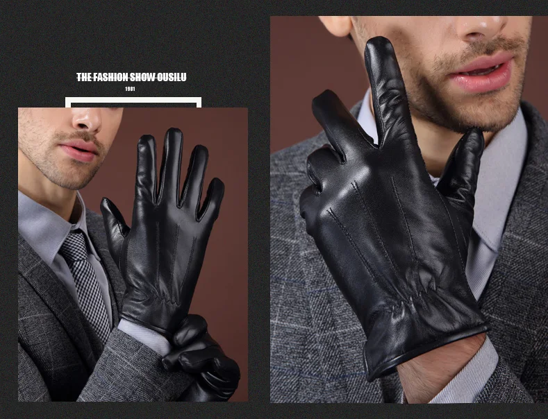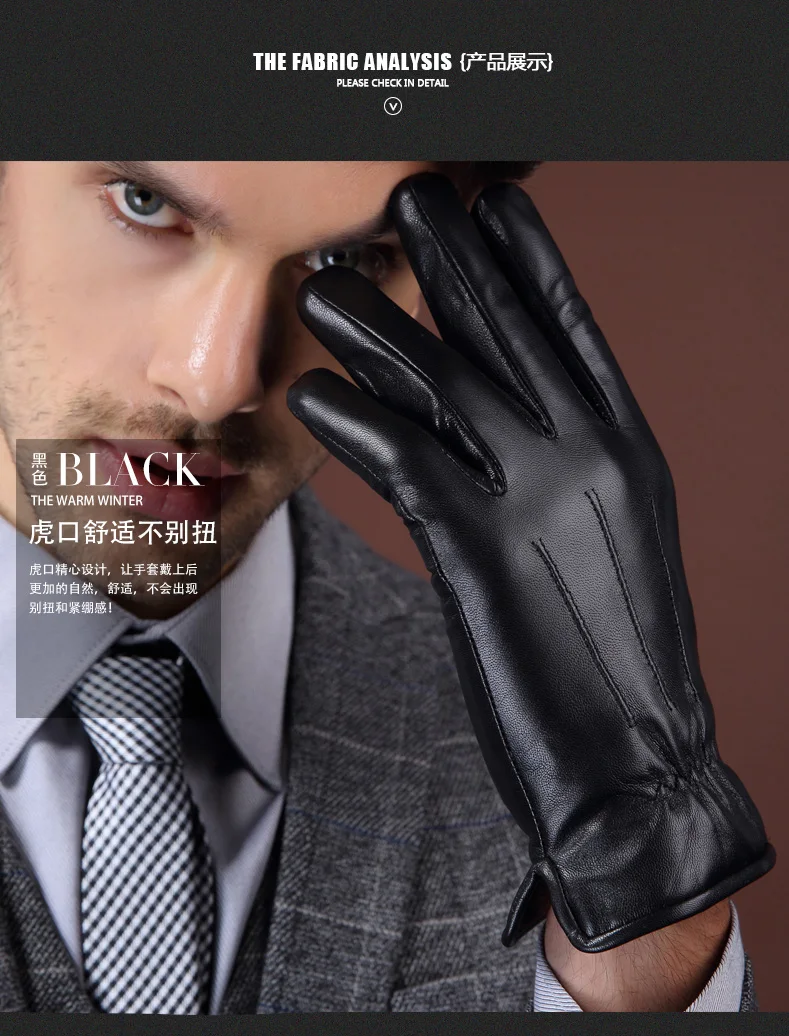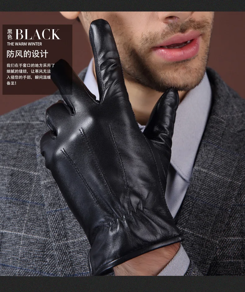 Зимние кожаные перчатки, мужские, черные, для сенсорного экрана, модные теплые перчатки для вождения, перчатки из козьей кожи, мужские перчатки, бесплатная доставка