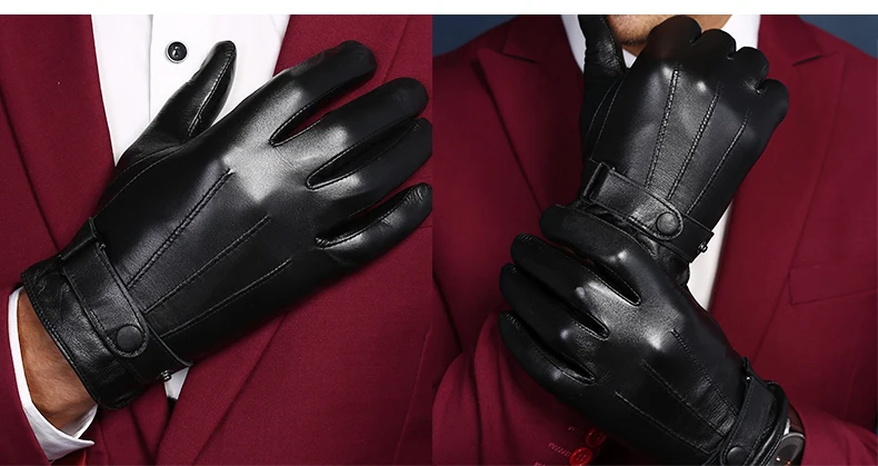 Новое поступление, перчатки из натуральной кожи, мужские перчатки с сенсорным экраном, зимние перчатки из козьей кожи, модные теплые варежки для вождения, бесплатная доставка