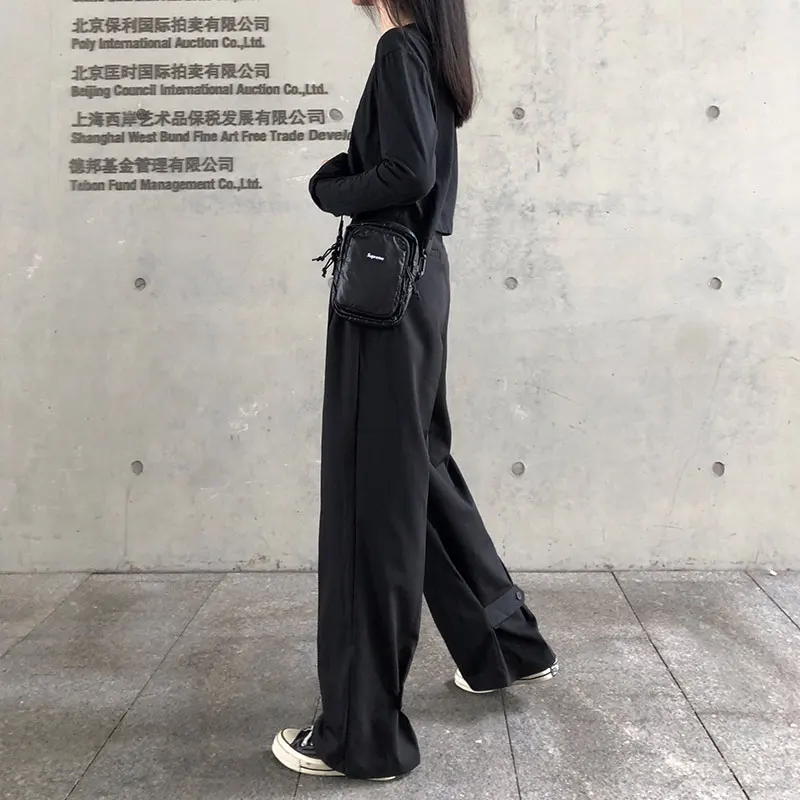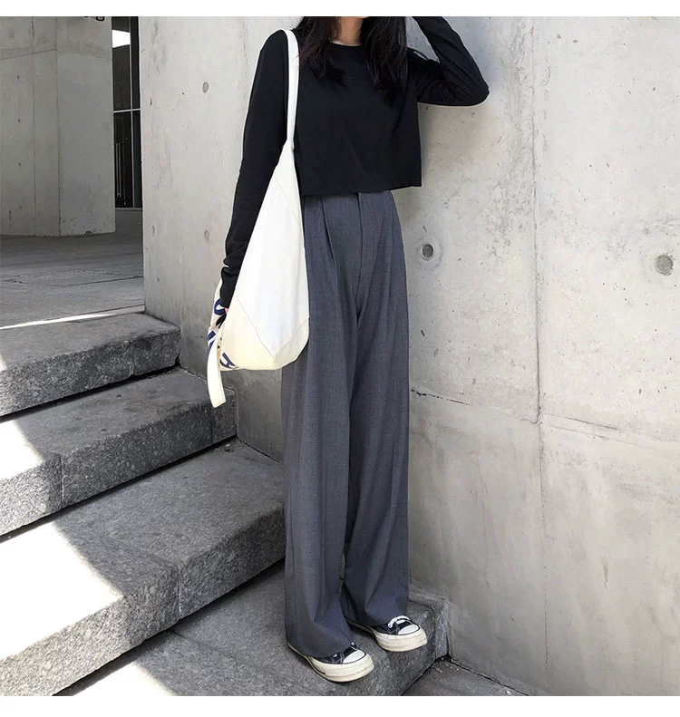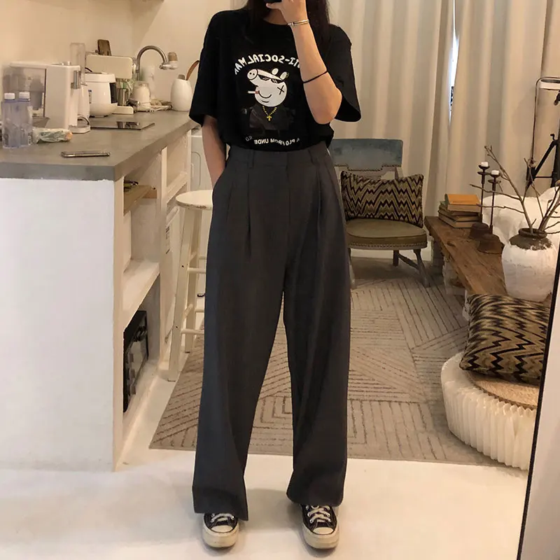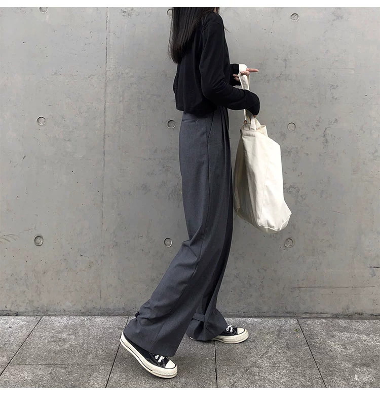 Брюки женские повседневные Прямые Костюмные с завышенной талией, офисные длинные брюки с широкими штанинами, 2 цвета, S-L, X580, 2019