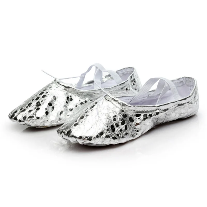 Качественные туфли для йоги и танца живота USHINE из искусственной кожи золотого и серебряного цвета, обувь для выступлений на мягкой подошве для спортзала, балетные туфли для девочек и женщин