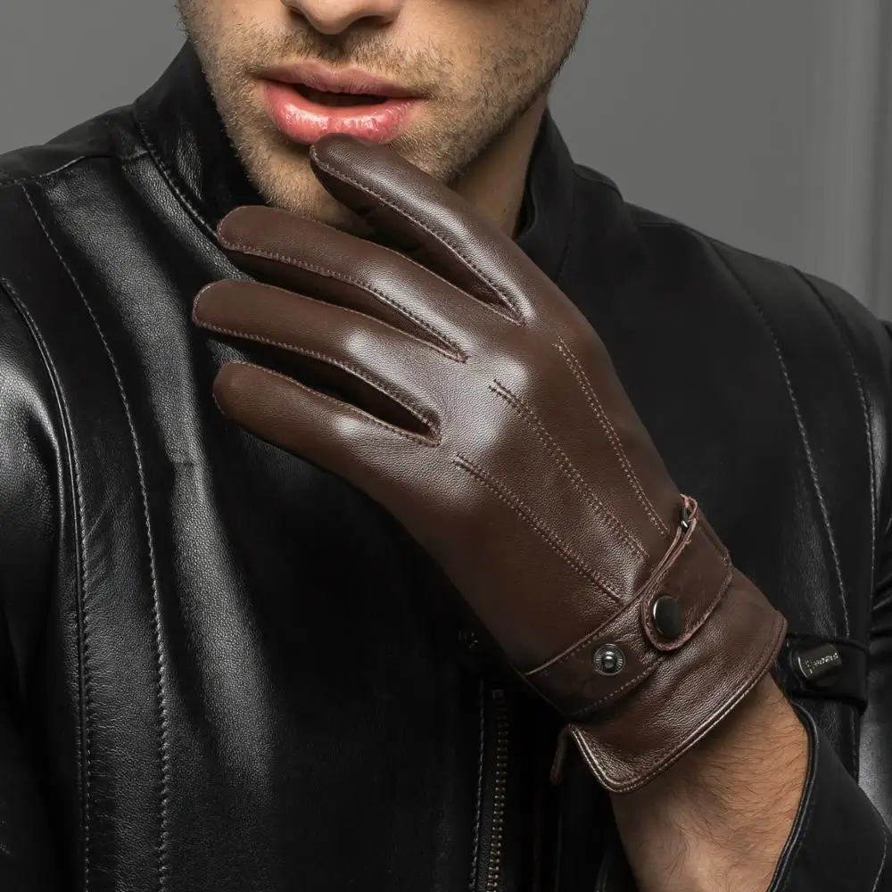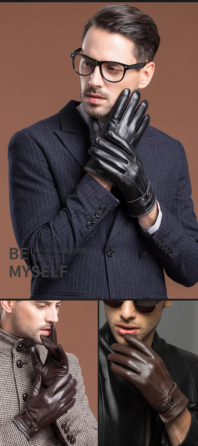 Перчатки мужские из натуральной козьей кожи, зимние, для сенсорного...