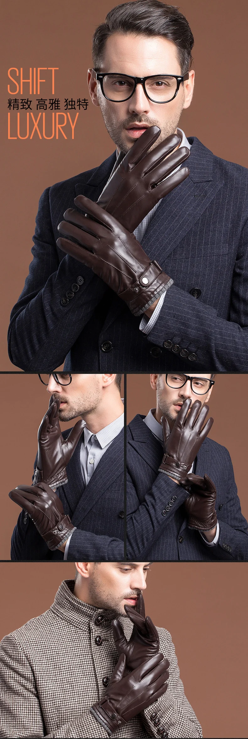Весенне-зимние перчатки из натуральной кожи для мужчин, толстые черные/коричневые теплые мужские варежки с сенсорным экраном Guantes Luvas для вождения, бесплатная доставка