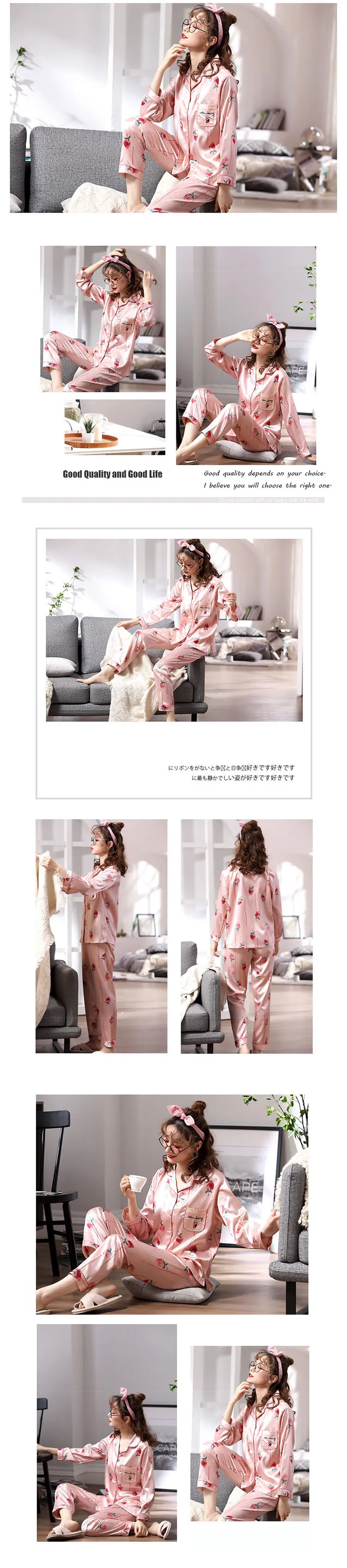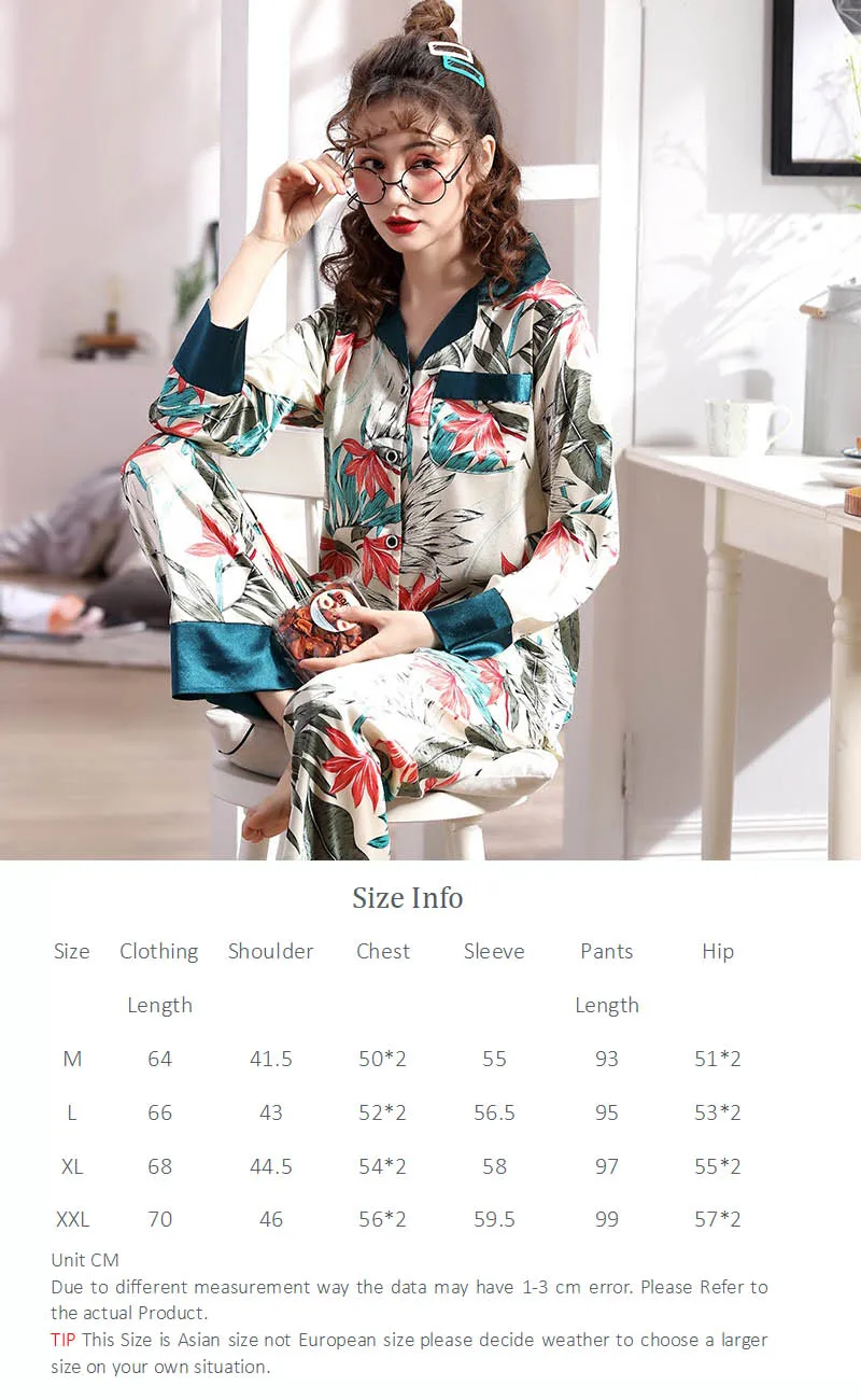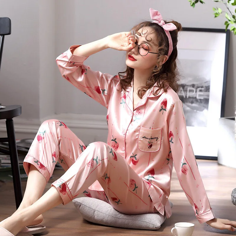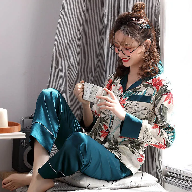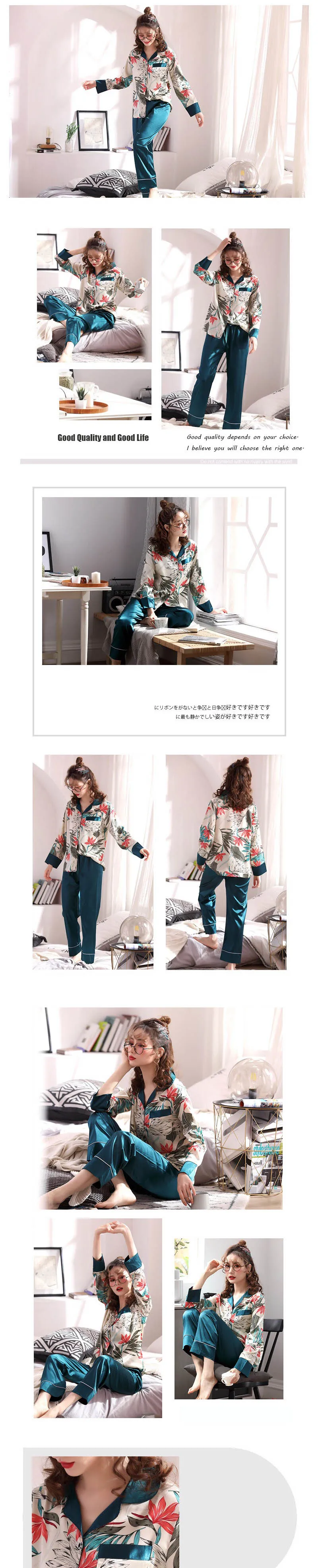 Женский пижамный комплект из 2 предметов, рубашка с длинным рукавом и штаны, атласный, с отложным воротником, Осень-зима 2021
