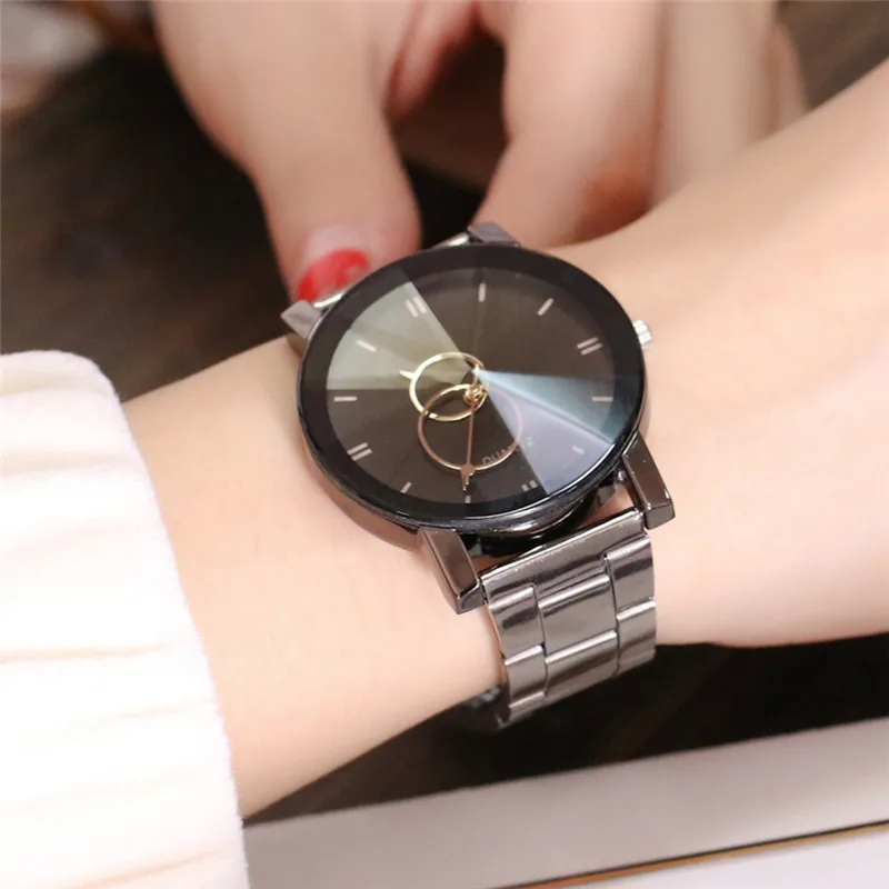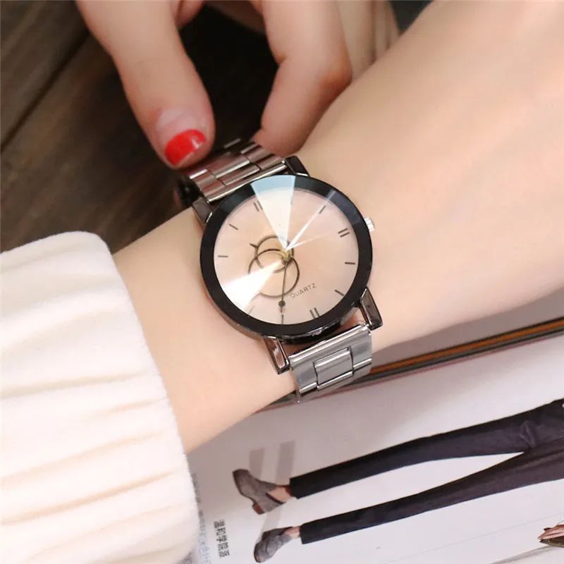 Пара креативных дизайнерских женских часов модные черные круглые часы с циферблатом из нержавеющей стали Кварцевые наручные часы подарки relogiosfeminino