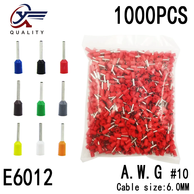 1000pcsPack Block-Cord Terminal Insulated-Ferrules End-Wire-Connector Electrical-Crimp-Terminator Tubular-AWG E6012