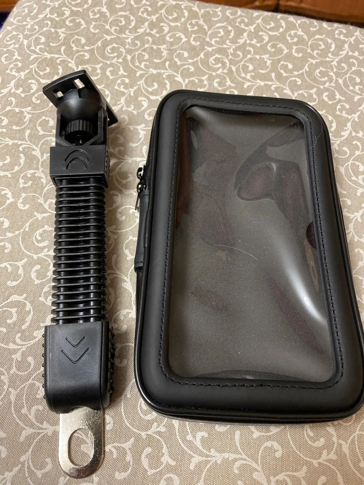 Для 11 iPhone брал размер L. Подошёл по размеру идеально, не болтается. Крепление к рулю эластичное, но жесткое. Единственный вопрос относительно крепления коробки с телефоном к направляющей. Если будет отщелкиваться, придётся на клей посадить. Эксплуатация покажет.