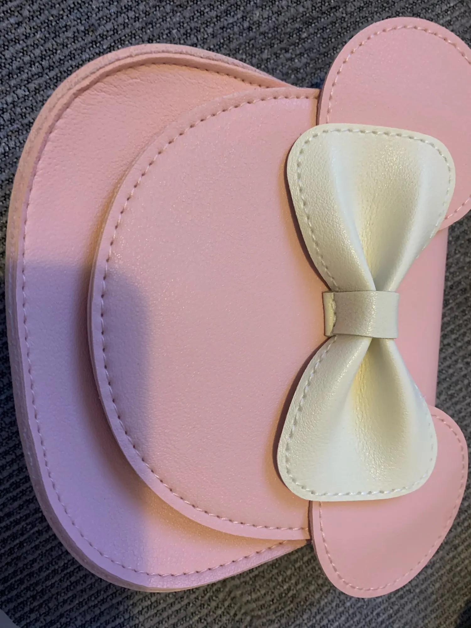 Очень милая маленькая сумка, заказанная для моей дочери 3 года, она просто поклонница Минни Маус. Доставка была гладкой, и она там очень довольна этим. Должен сказать, что это действительно сумка на шнурке для некоторых старших детей, поэтому я надел там узел, потому что ремешок действительно слишком длинный для моей дочери.