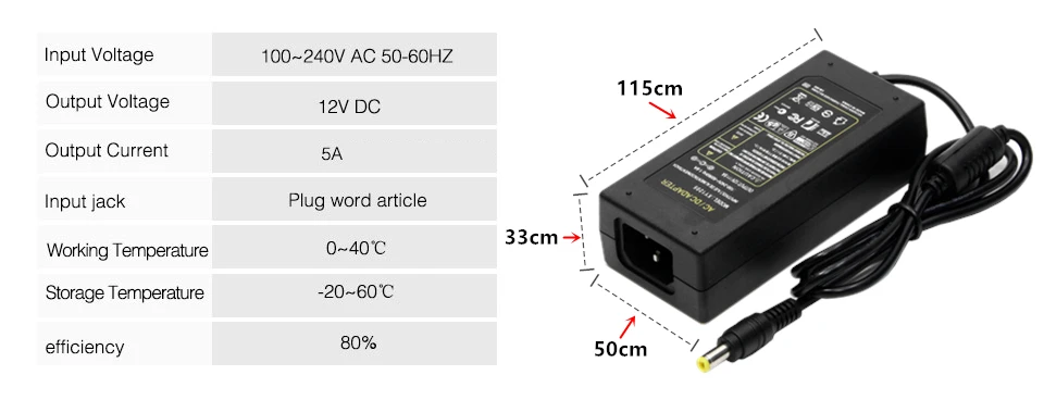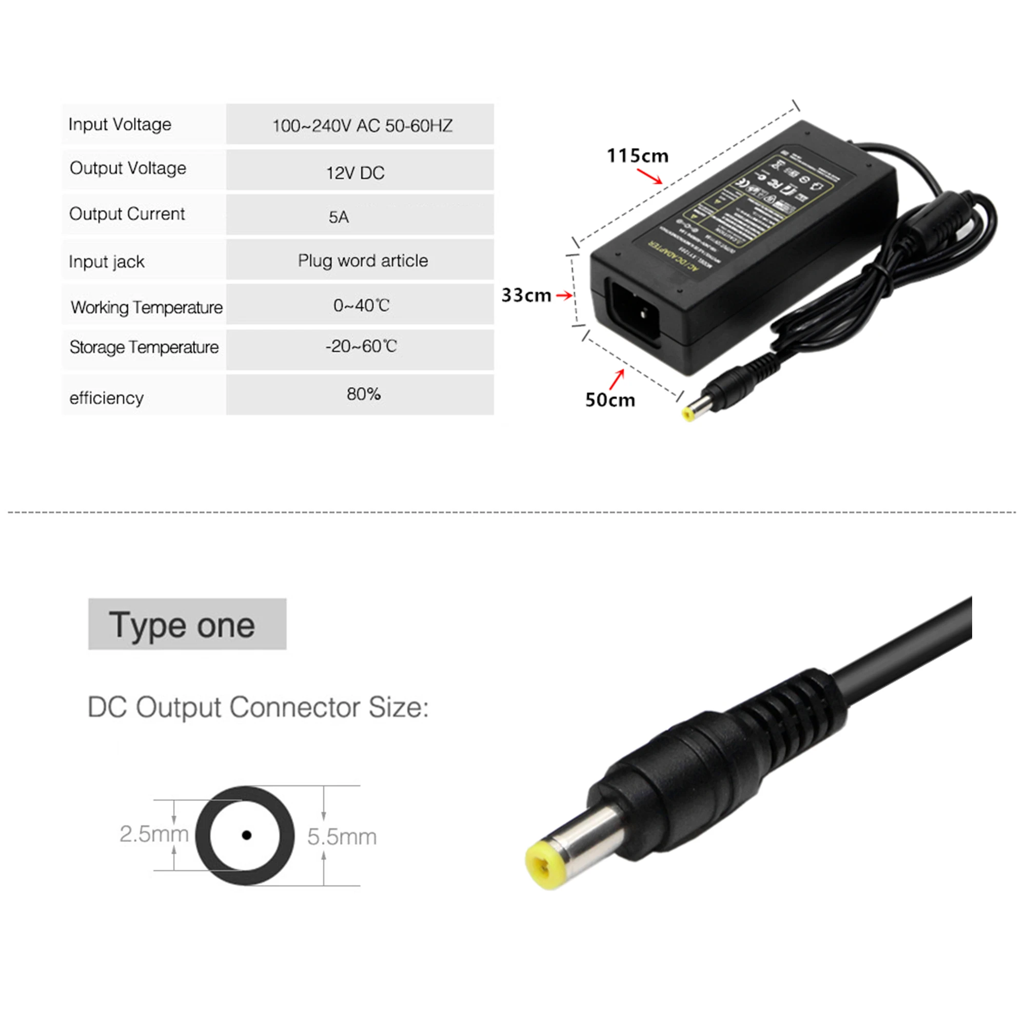 Светодиодный блок питания, 12 в пост. Тока, 5 А, с адаптером питания для Великобритании, США, ЕС, Австралии, для светодиодных лент 3528 WS2811 5050 RGB RGBW