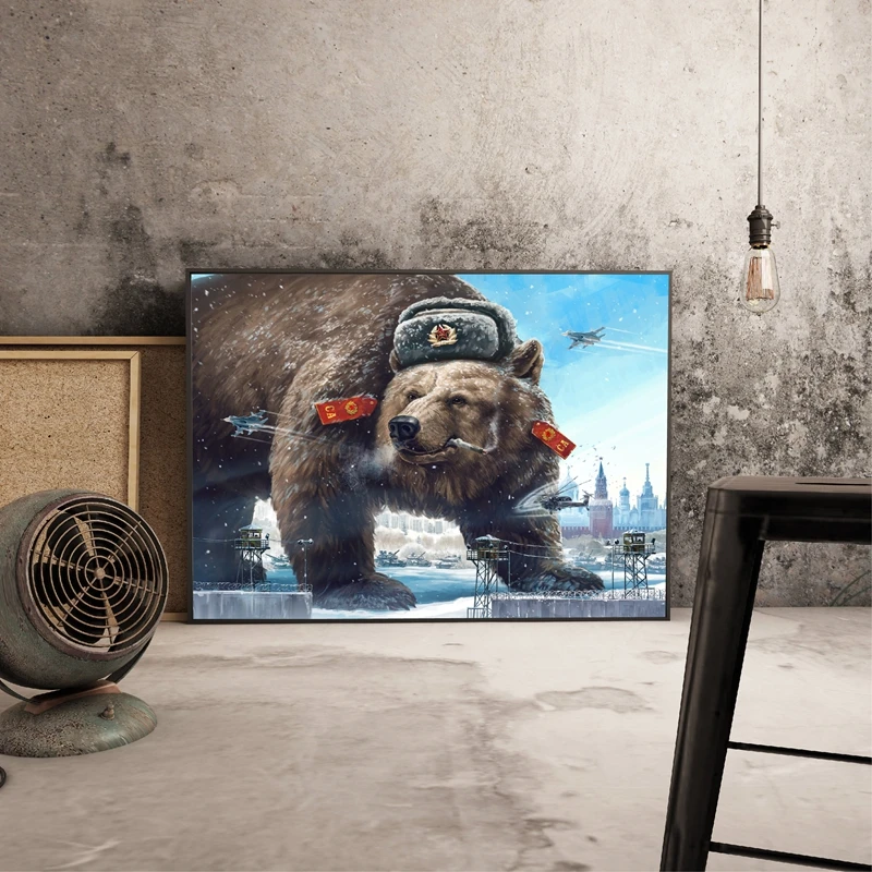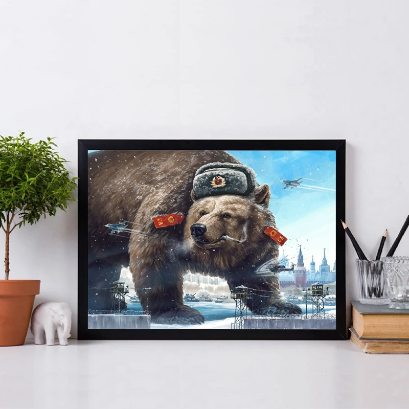 Постер с карикатурным персонажем, Грозный медведь, принты России и СССР, Картина на холсте, настенное искусство, Декор