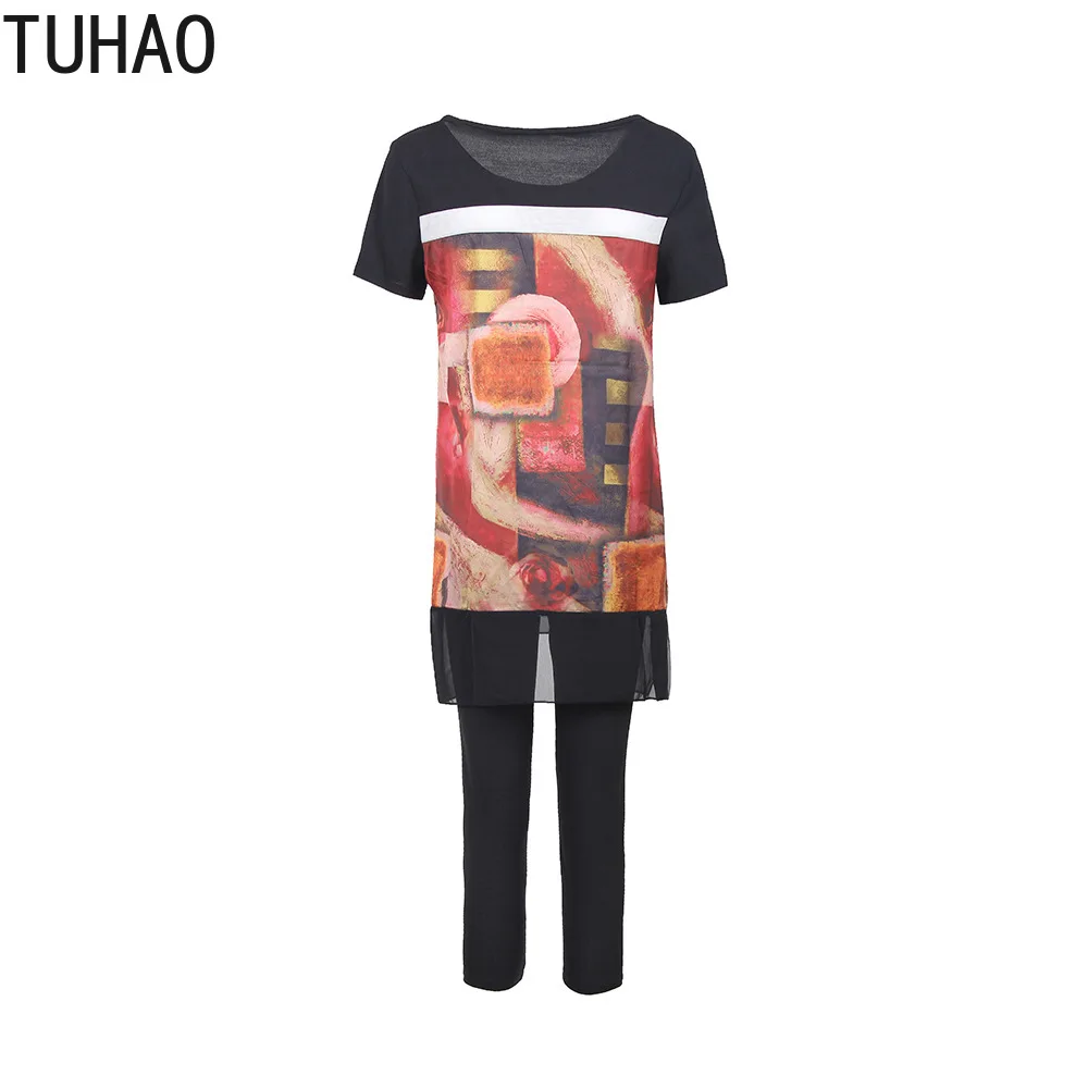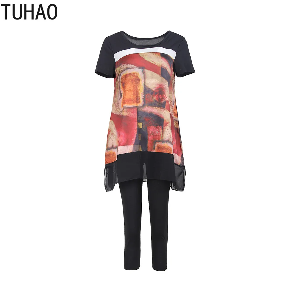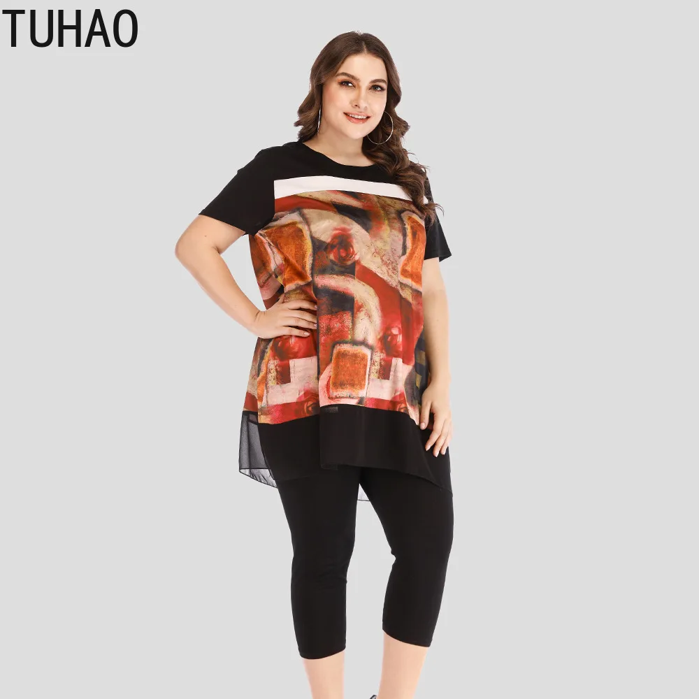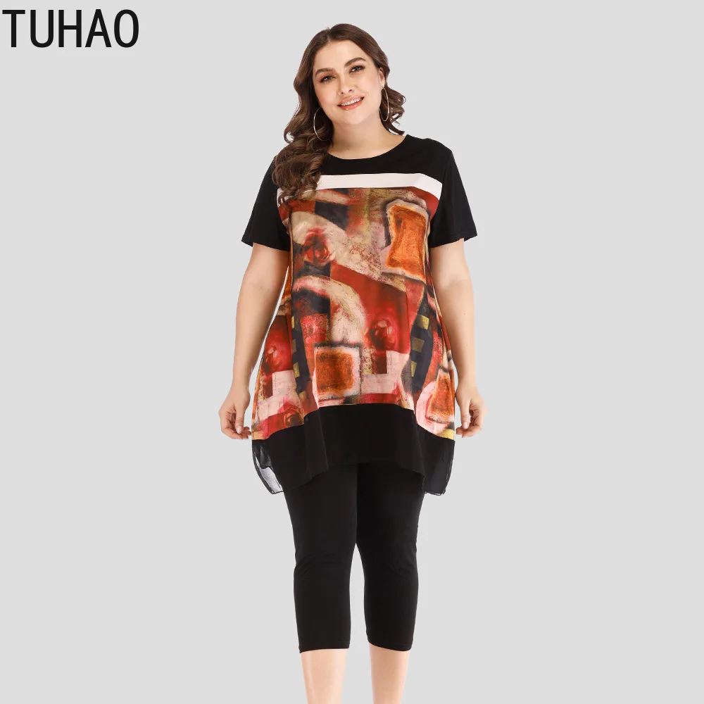 Костюм TUHAO Женский, рубашка и брюки средней длины с принтом, комбинированный костюм из двух предметов, костюм со штанами, леди, костюм, размера плюс 5XL 4XL, LW108, лето