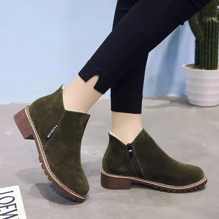 Женские Классические ботинки из флока, на молнии, с теплым мехом и ...