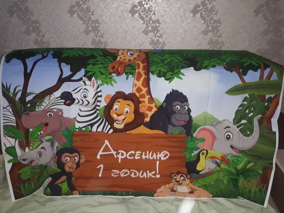 Фон обалденный, суперский! А самое главное большой, достаточно большой))) очень понравился) красочный) пропечатка качественная так же как и материал) хочу на годик сделать праздник малышу на тему джунглей) также персональную фотосессию) а этот фон очень красиво украсит всё) рекомендую