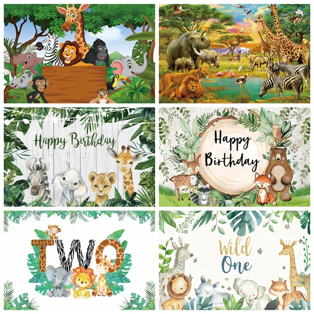 Тропические джунгли лес дикие животные фотография фотозона для новорожденных детей первый день рождения Виниловый фон для фотосъемки