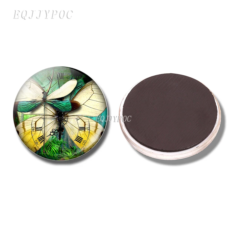 12p стимпанк часы на холодильник магнит Стрекоза бабочка птица держ...
