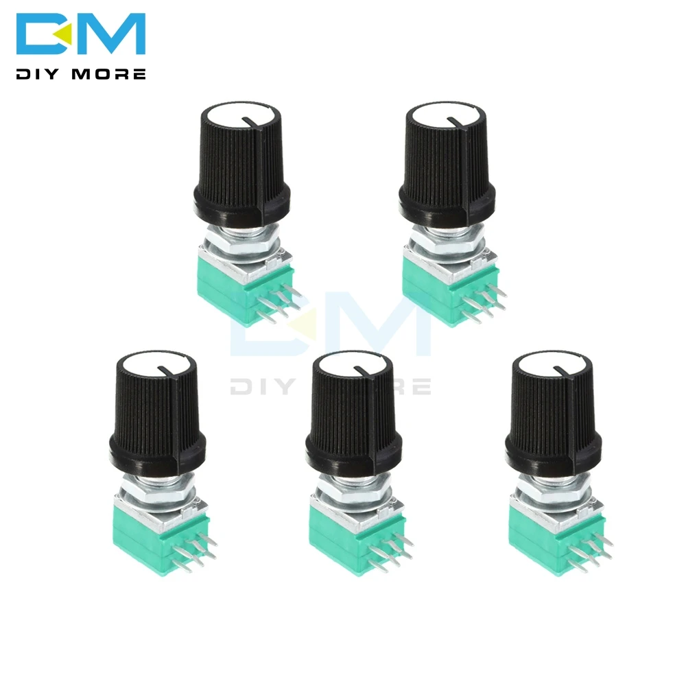 1PCS 6 Pin Rotary Potentiometer 6mm Knurled Shaft Single Linear B Type B10K ohm 5K 10K B20K B50K B100K With Caps White 6PIN 6P