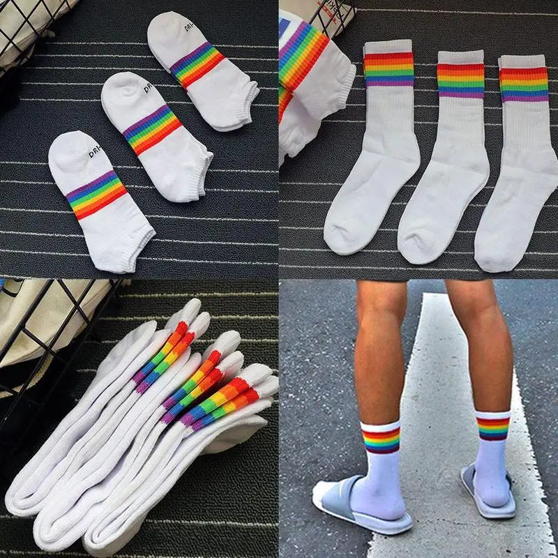 Оригинальный дизайн для молодых людей Хип-хоп Радуга геи ЛГБТ Модные мужские хлопковые уличные высокие носки для танцев для мальчиков носки в радужную полоску для девочек