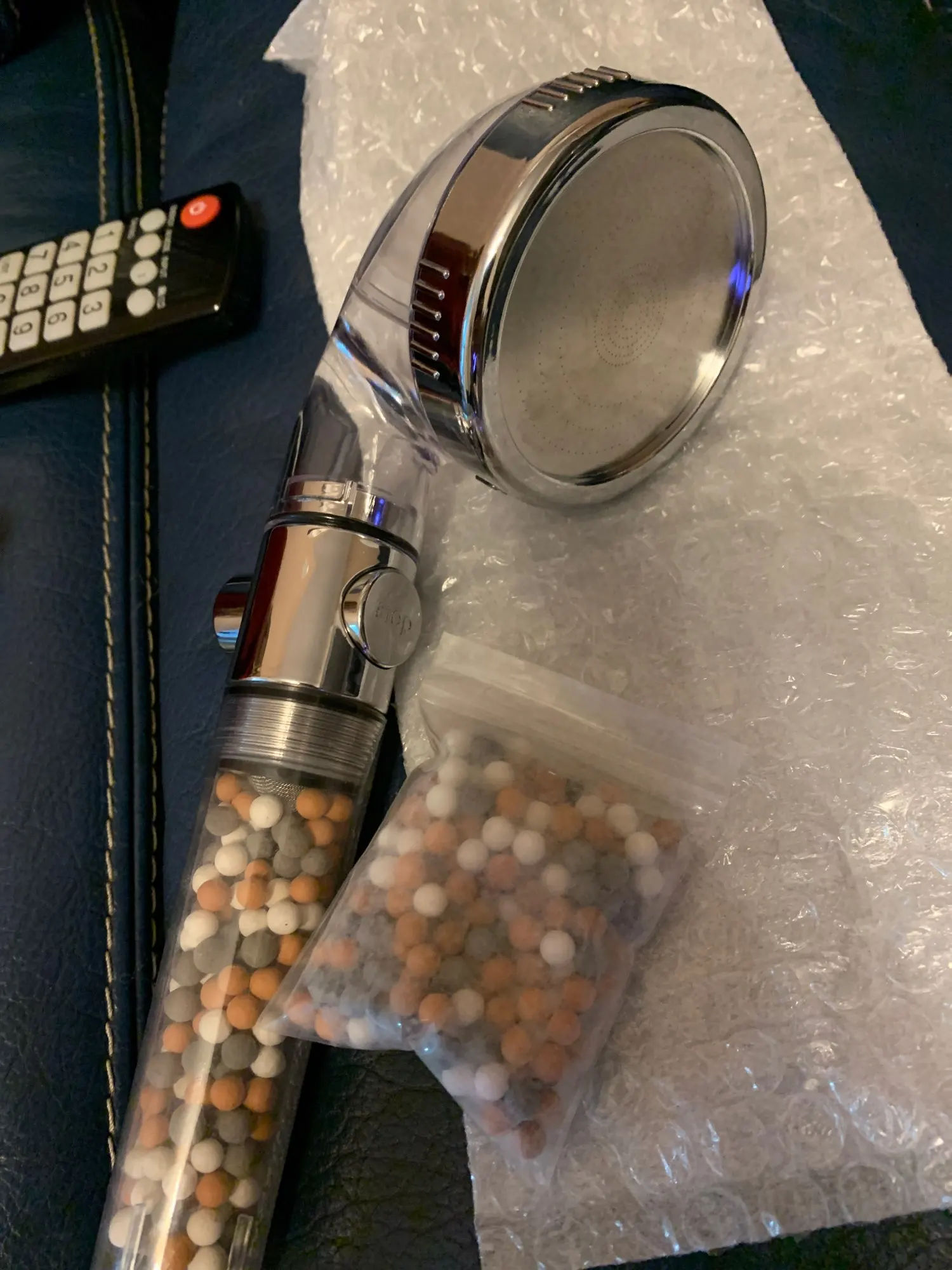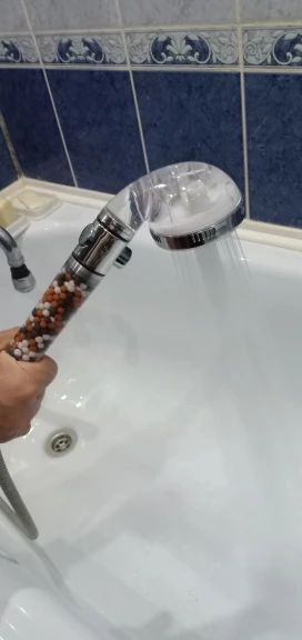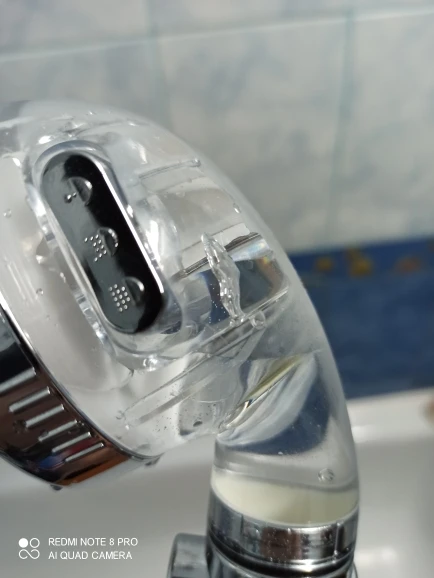 Реально крутой душ. Уж не знаю,насколько эти камни внутри что-то дают, но выглядит даже красивее, чем на фото. Из минусов только кнопка stop в неудобном месте. Когда держишь рукой душ, часто случайно нажимается кнопка и напор воды меняется.