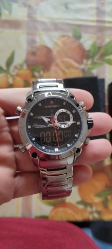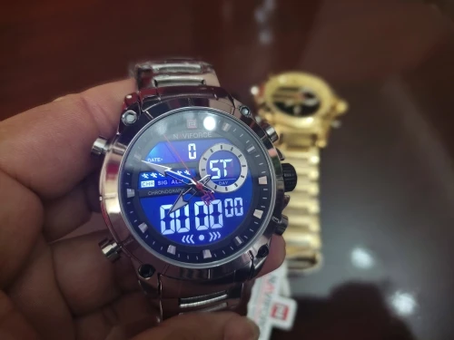 Часы наручные NAVIFORCE Мужские кварцевые цифровые, модные водонепроницаемые стальные, с двойным дисплеем, с датой