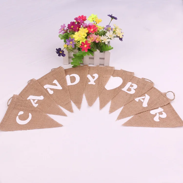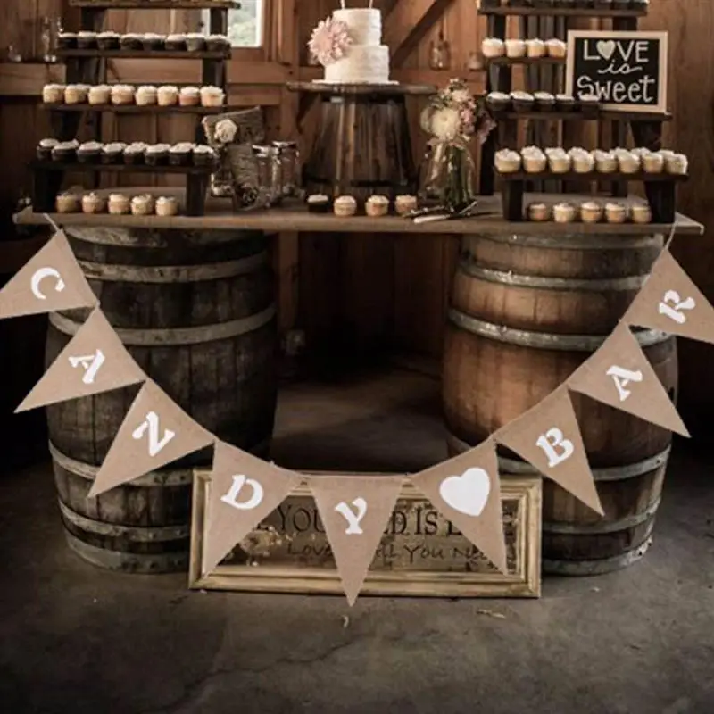 Баннер с принтом в виде конфет и сердца, треугольный Вымпел, баннер из мешковины, Треугольные флаги для украшения вечеринки