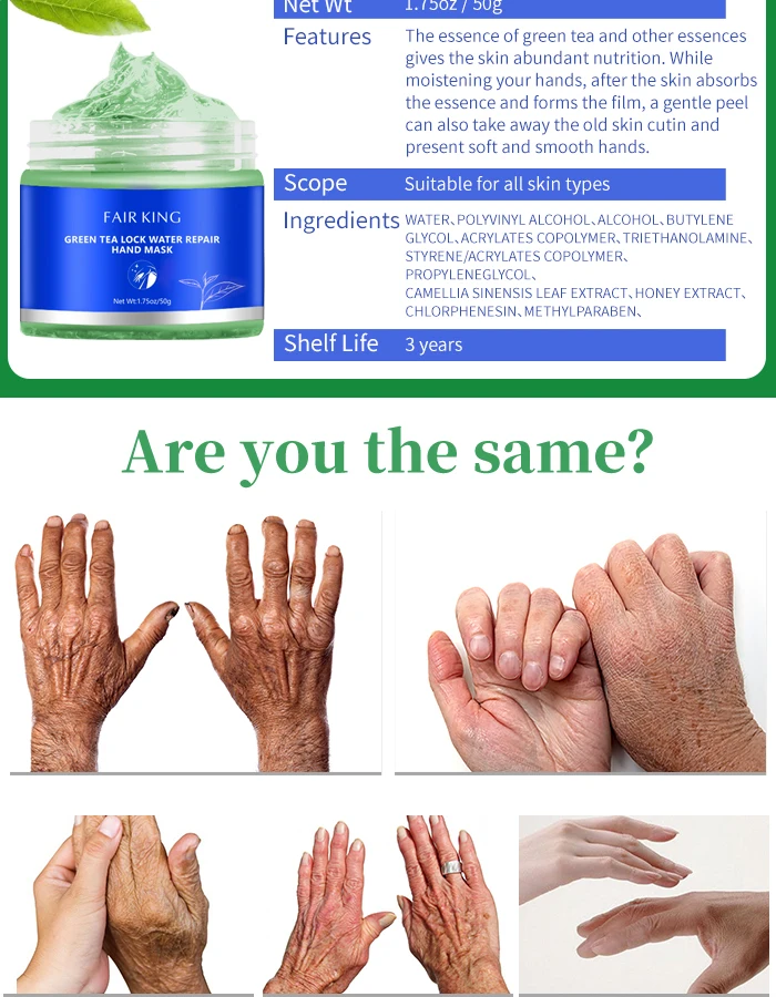 Восстанавливающая водная маска для рук с фиксатором зеленого чая, питающая, увлажняющая, отбеливающая, отшелушивающая, от мозолей, антивозрастной крем для рук, 50 г