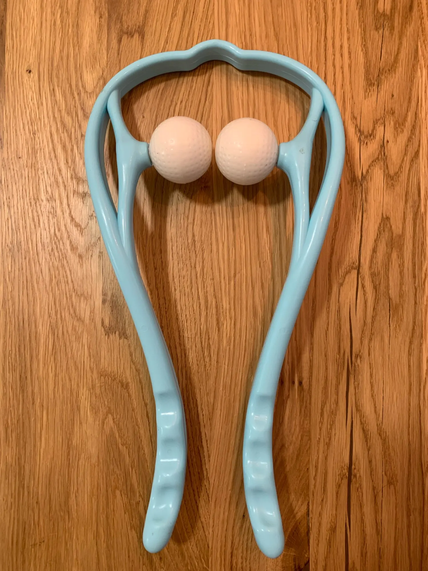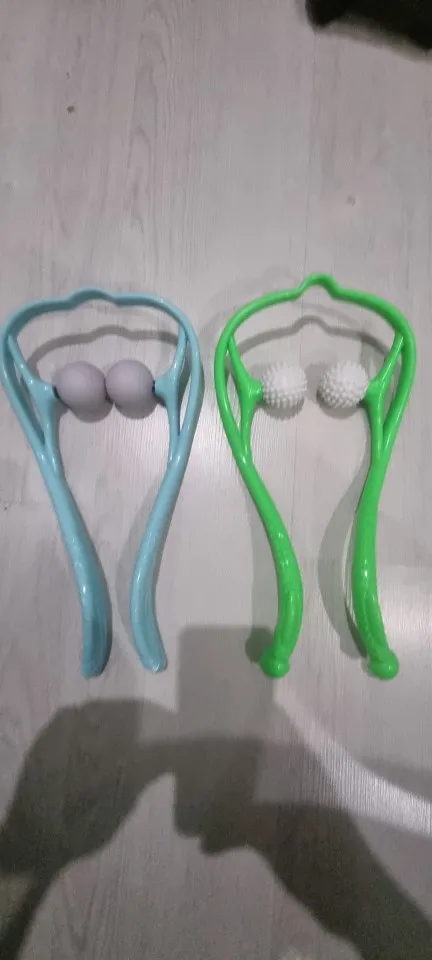 этот массажер хорош. купил в другом магазине более дешевый. пластик на нем оказался тонким и гнется весь. здесь купленный хороший, прочный, удобный. лучше купите здесь. на фото оба купленных мной массажера. зкленый я покупал в другом месте. он говно.