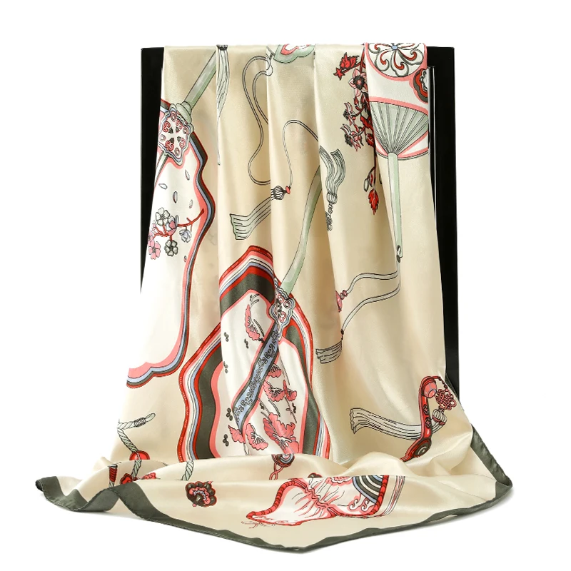 Шарф женский Шелковый, квадратный, 90 х90 см, в китайском стиле