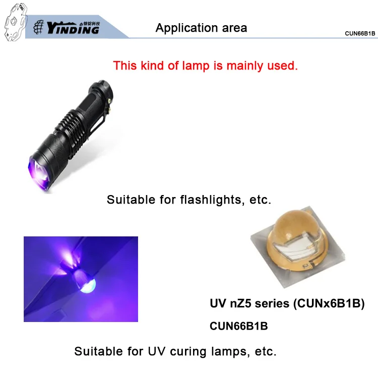 2 шт., ультрафиолетовые светодиодные лампы-фонарики CUN66B1B, 2 Вт, Нм