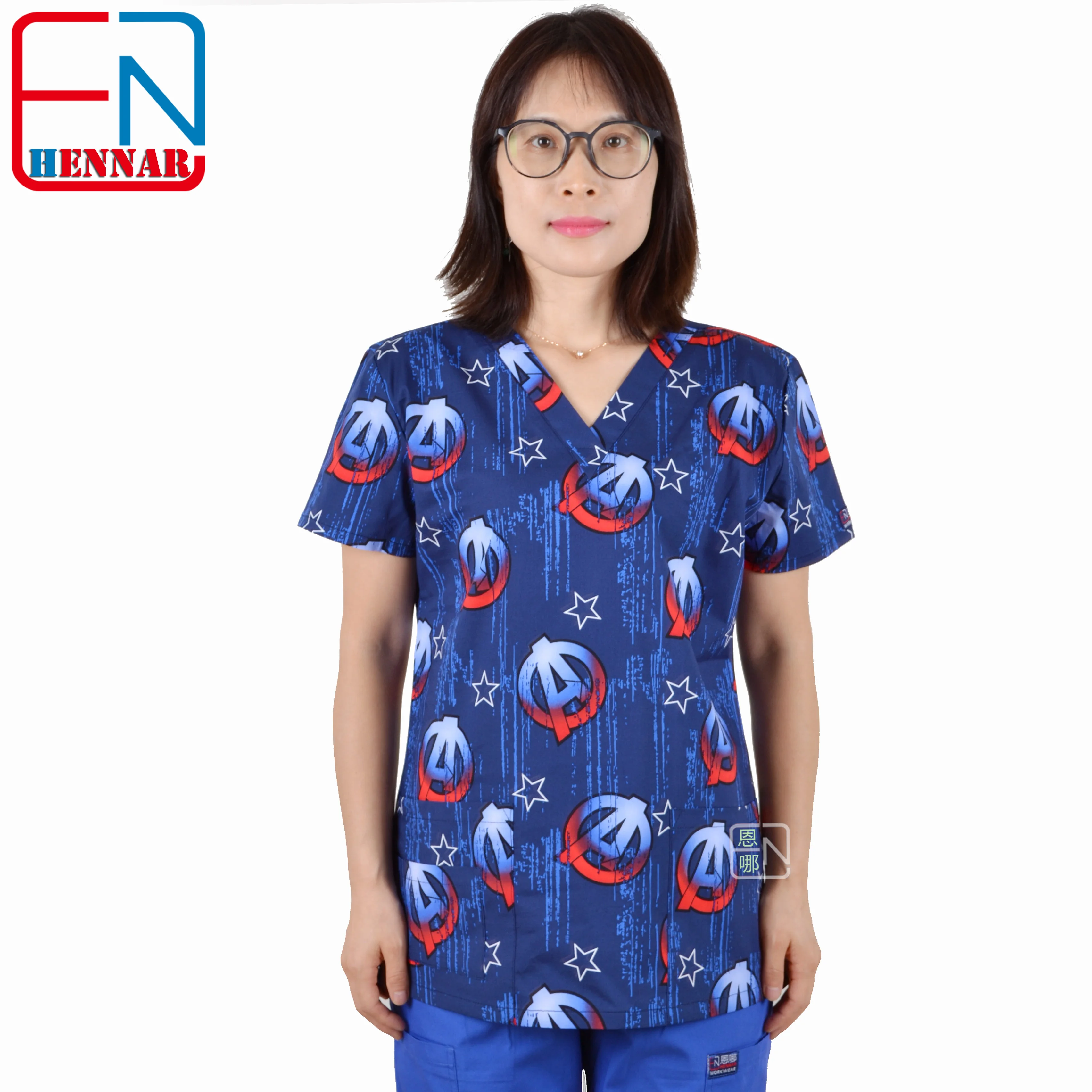 Hennar женский скраб-топ 100% принт хлопчатобумажная Униформа v-обр...