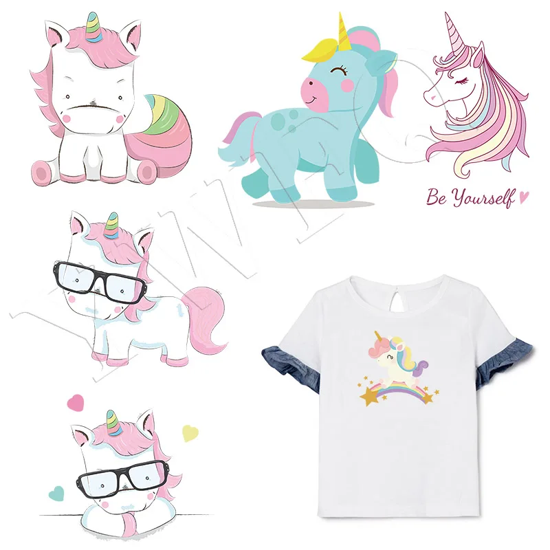 Детский Единорог термоперенос Модные топы Аппликация Diy виниловые ...