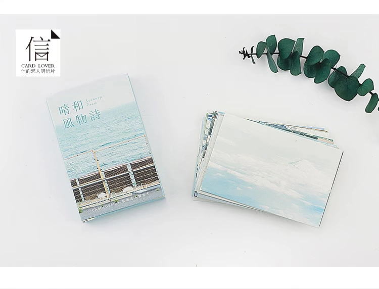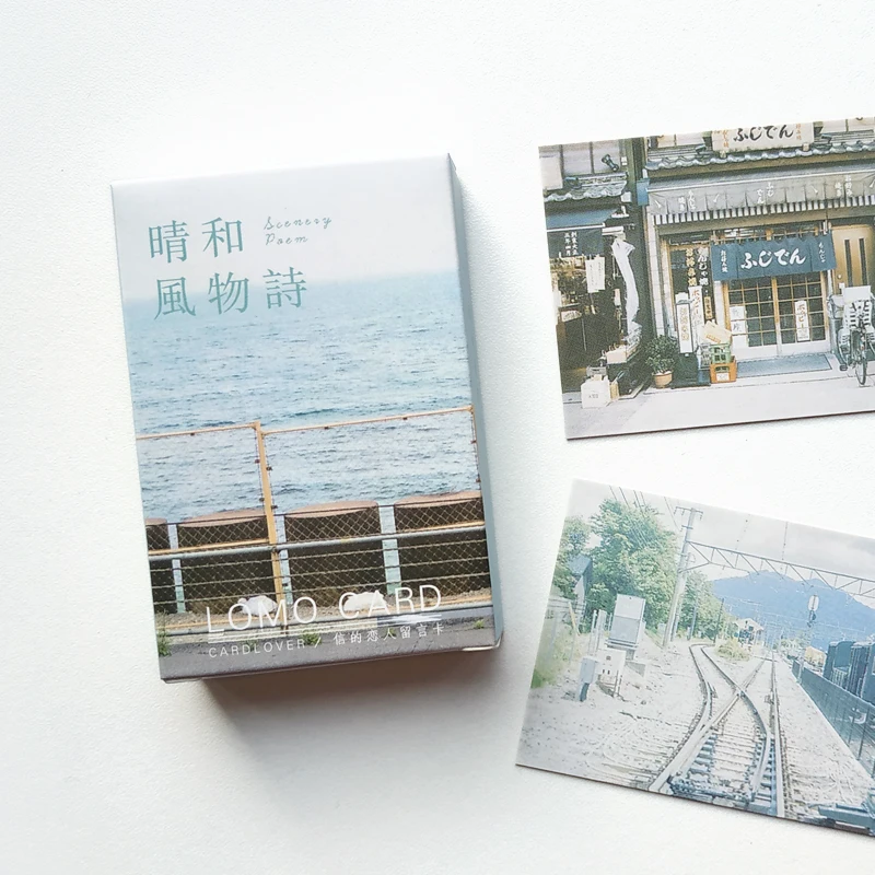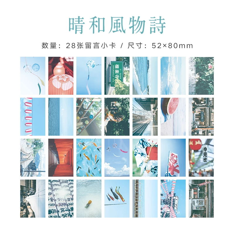 28 листовнабор, мини-открытка с японским пейзажем и поэмой