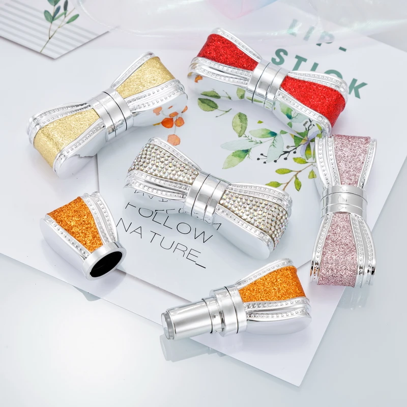 Оптовая продажа, 12,1 мм, алмазные Бутылочки для губной помады с бантом, высококачественные тюбики для губной помады, косметические многоразовые бутылочки, магнитные пакеты