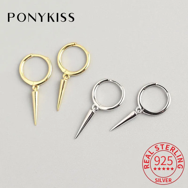 Серьги-кольца PONYKISS из стерлингового серебра 100% пробы с заклепками в виде конусов, модные серьги унисекс в стиле панк для вечеринки, аксессуары для девушек в стиле хип-хоп, шикарный подарок