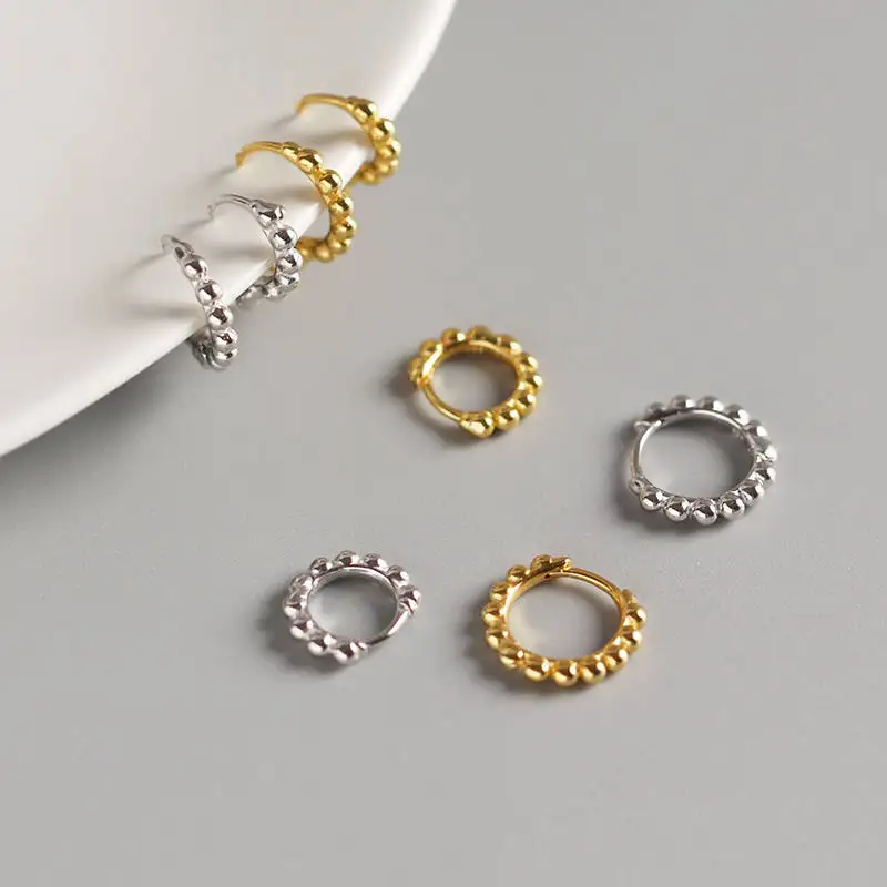 Серьги-кольца женские из серебра 925 пробы с круглыми бусинами