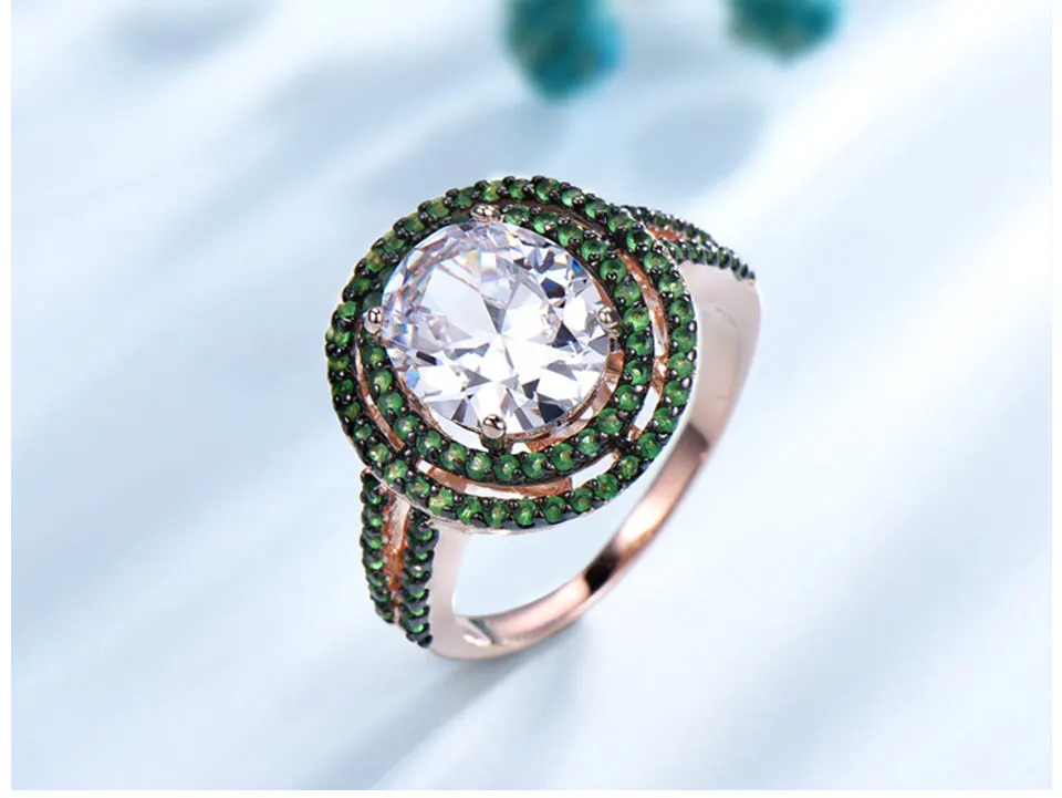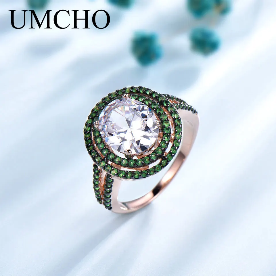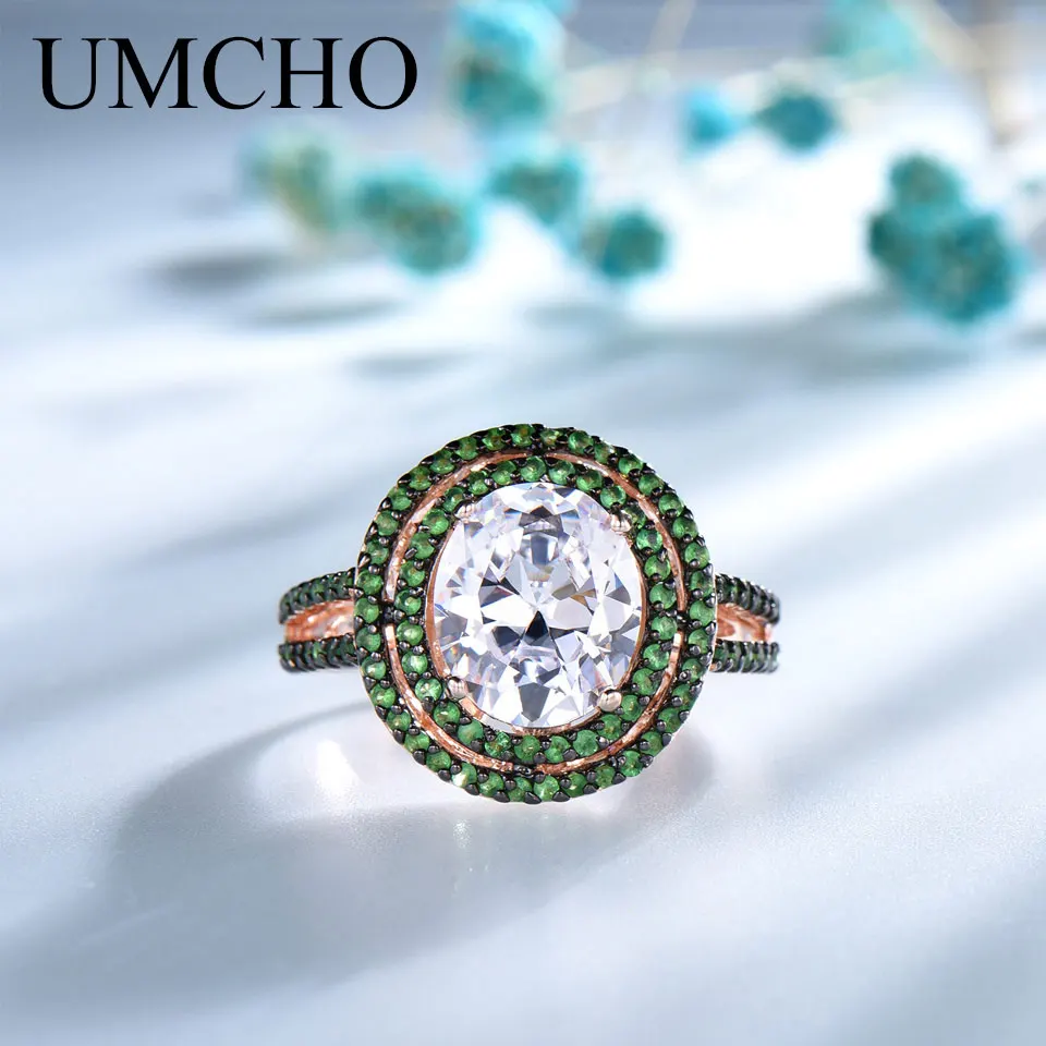 UMCHO зелёный Изумрудный камень, кольца для женщин, Стерлинговое Се...