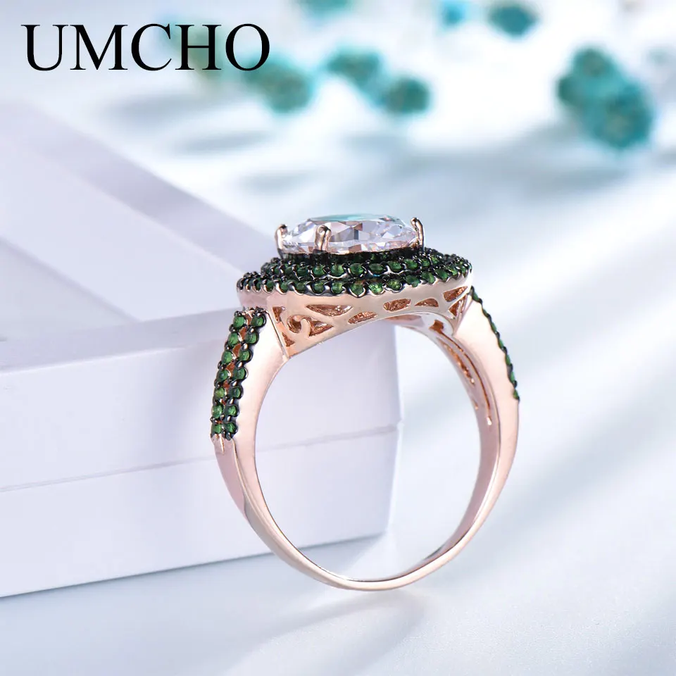 UMCHO изумруд драгоценный камень кольца для женщин принцесса кольцо...
