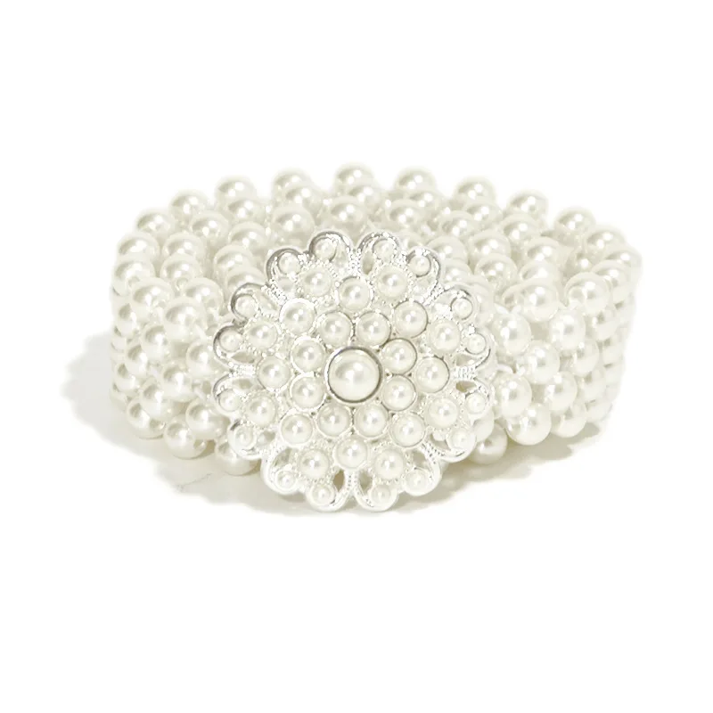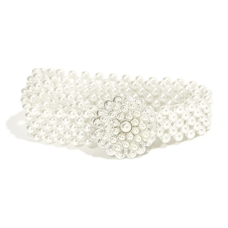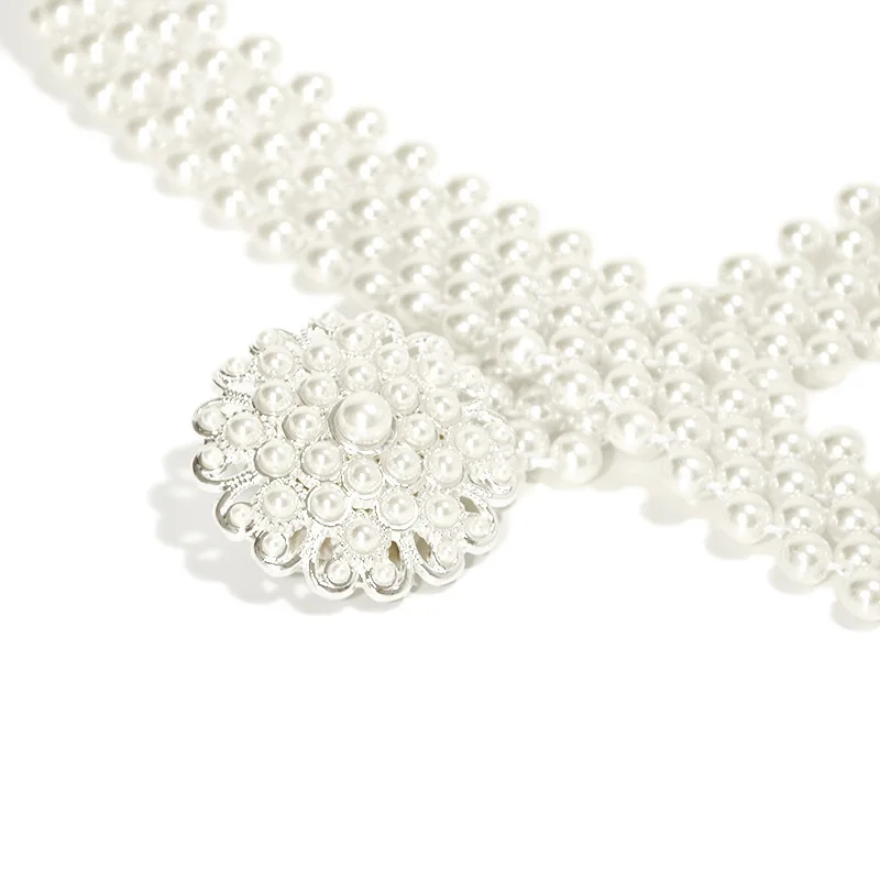 Жемчужный пояс в европейском и американском стиле для девочек, украшенный жемчужными цветами, стразы, эластичная цепочка на талии, белое платье