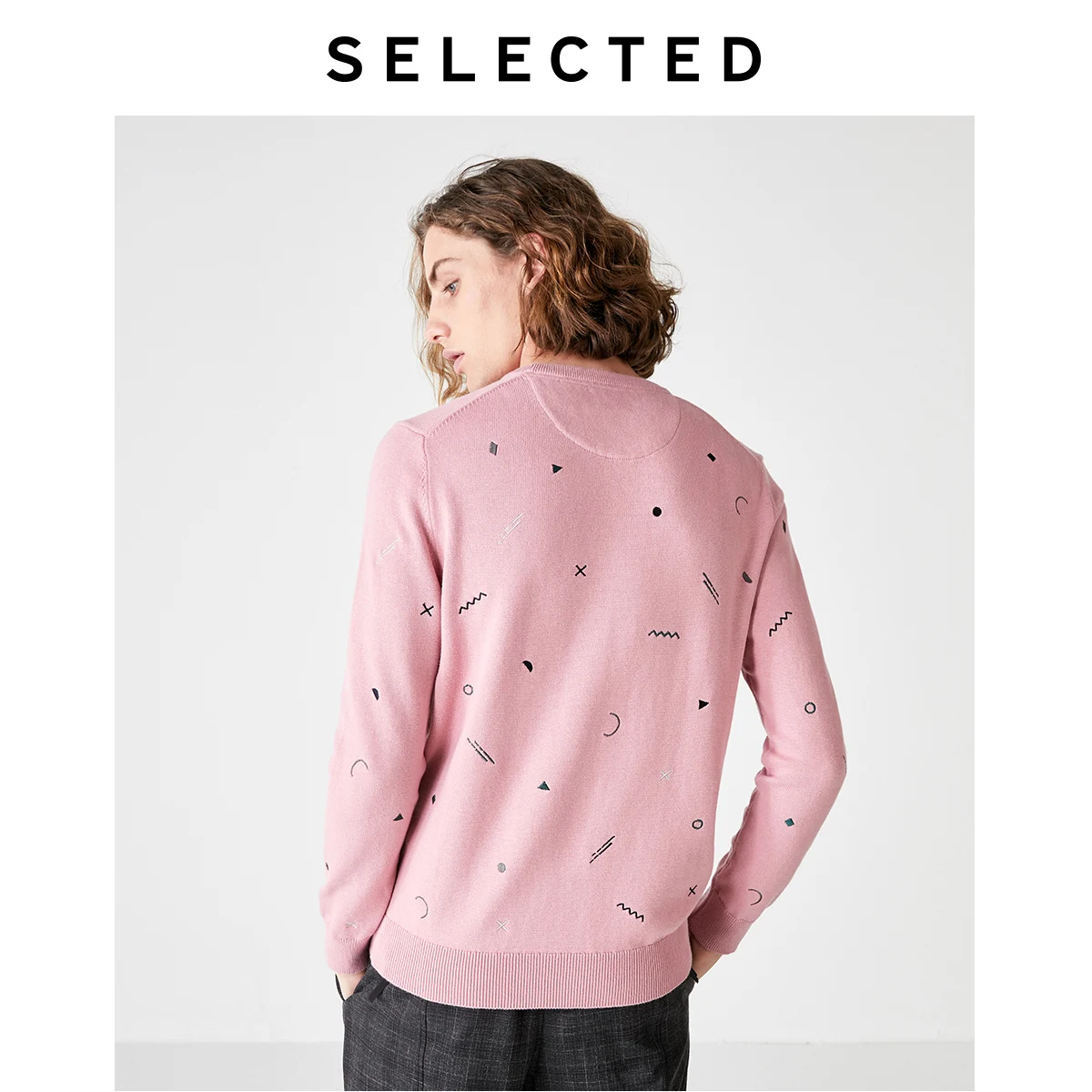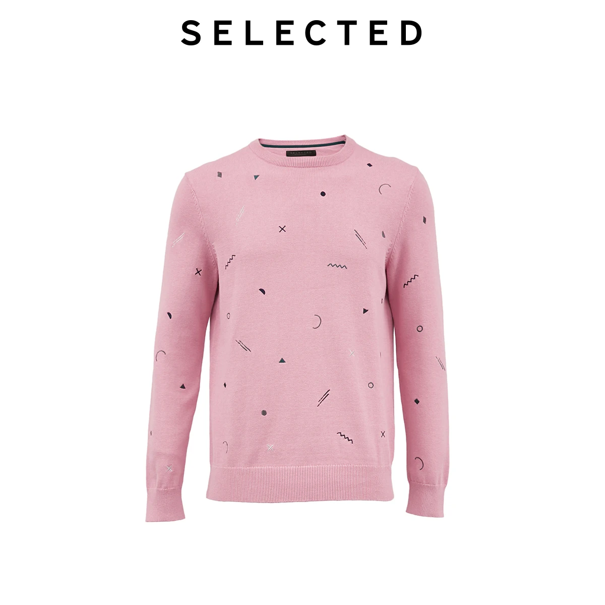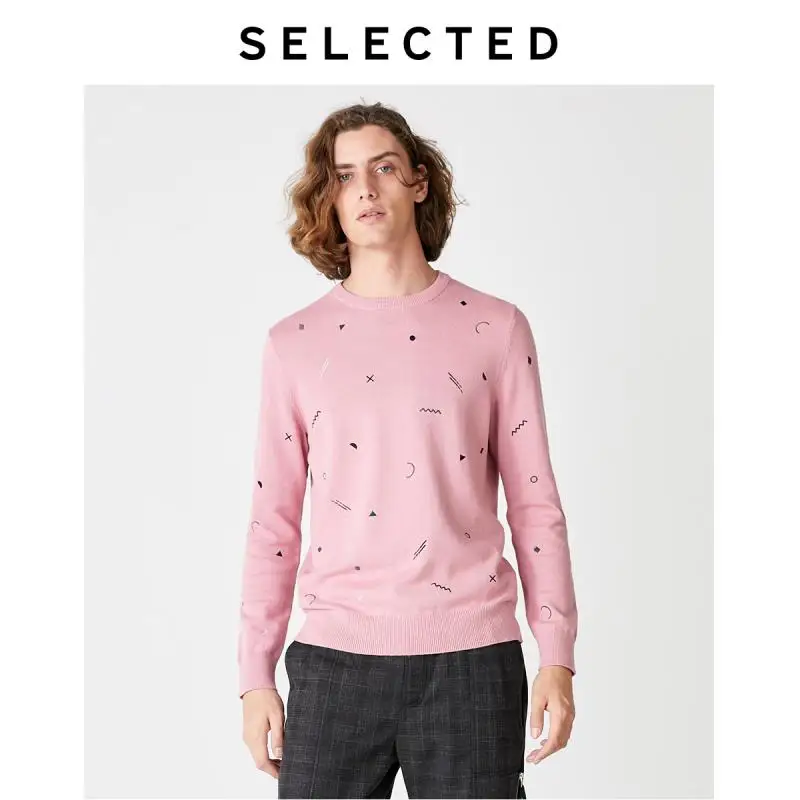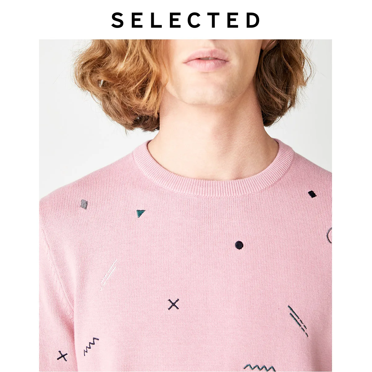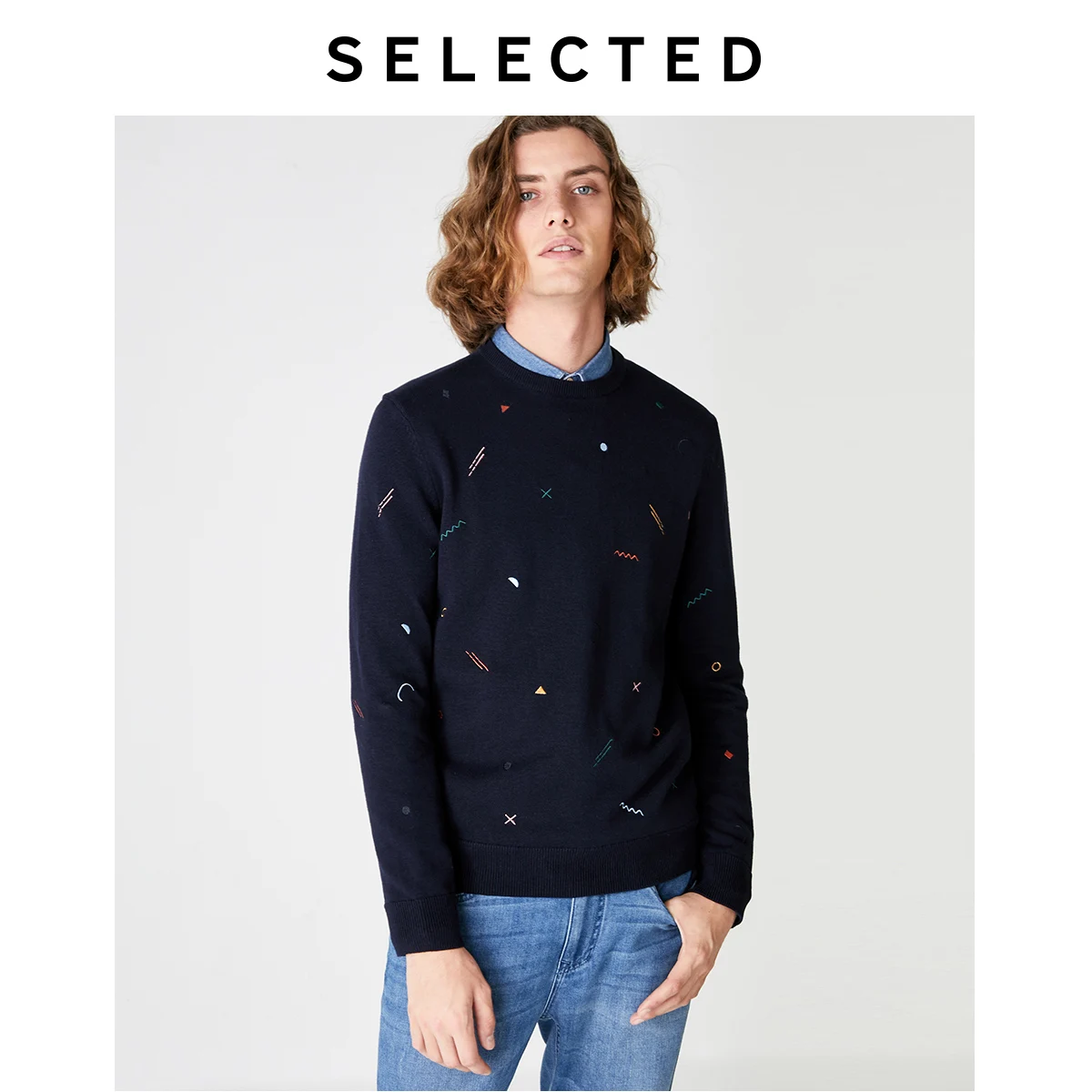 Мужской трикотажный свитер с вышивкой и длинным рукавом