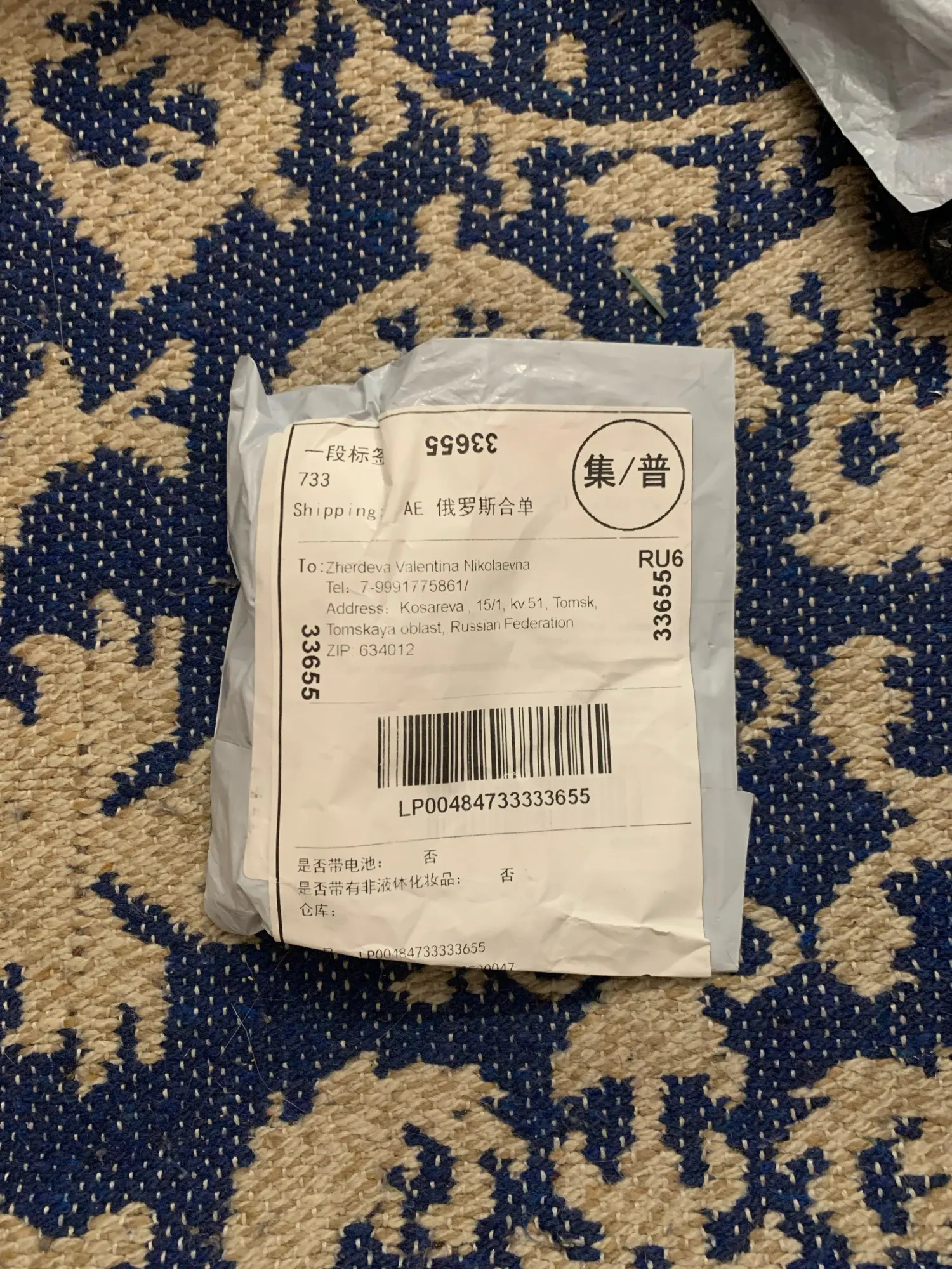 Страна: RU Color: 1 Доставка: Cainiao Super Economy 27.01.2022