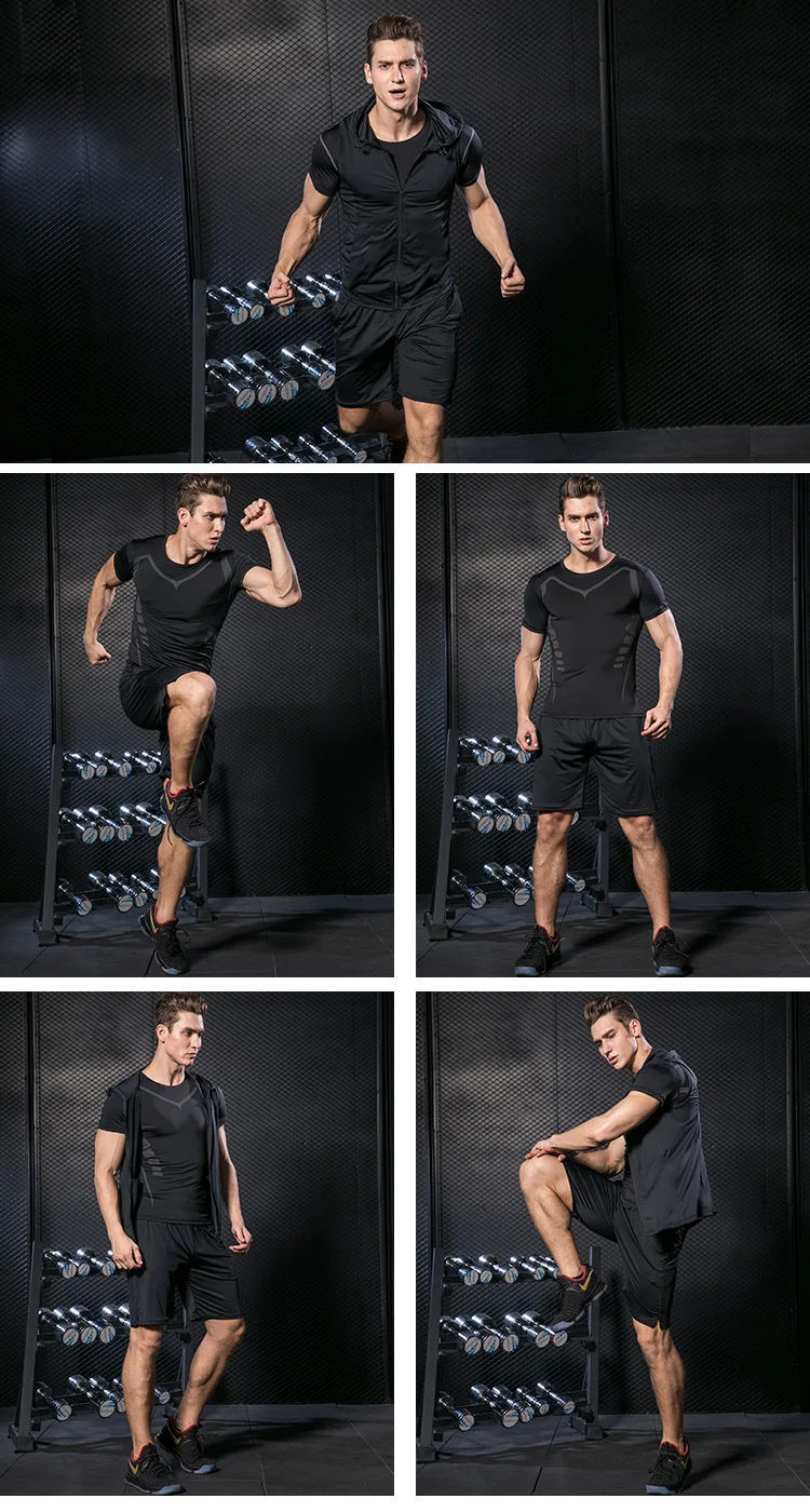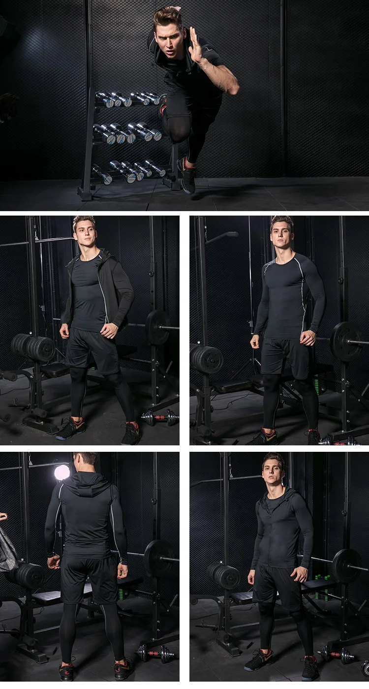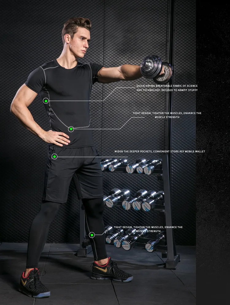 Мужской спортивный костюм, тренировочные колготки для тренажерного зала, Мужская одежда для тренировок, бега, компрессионный спортивный комплект, профессиональные спортивные костюмы для фитнеса и бега