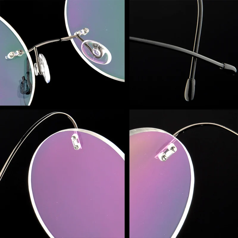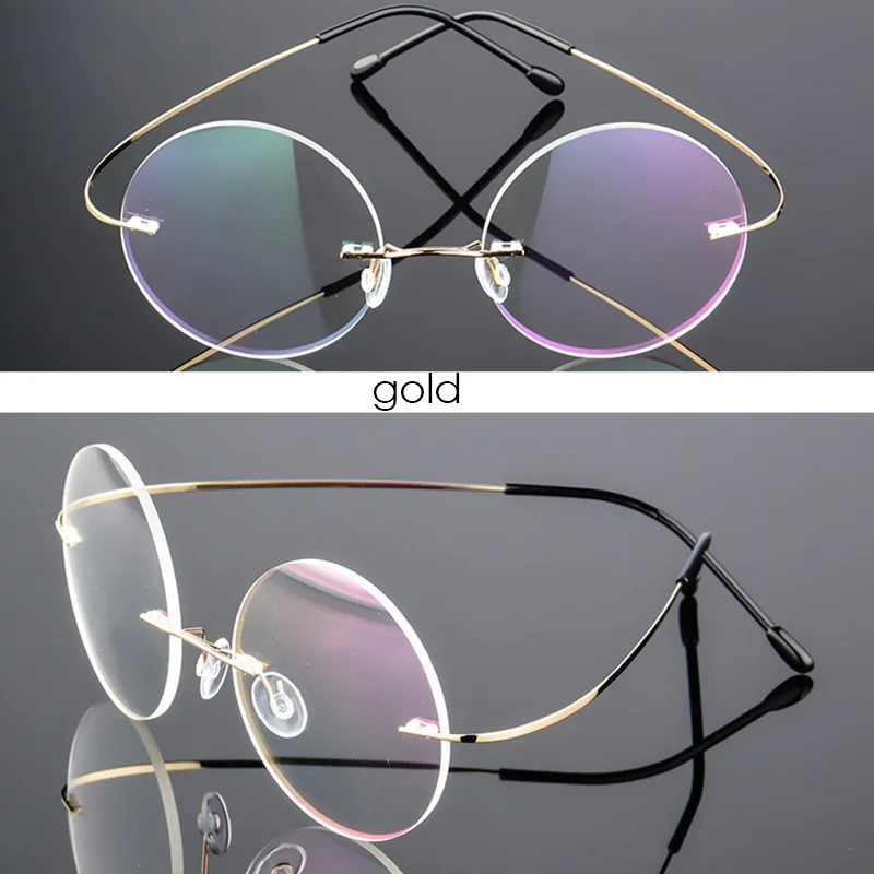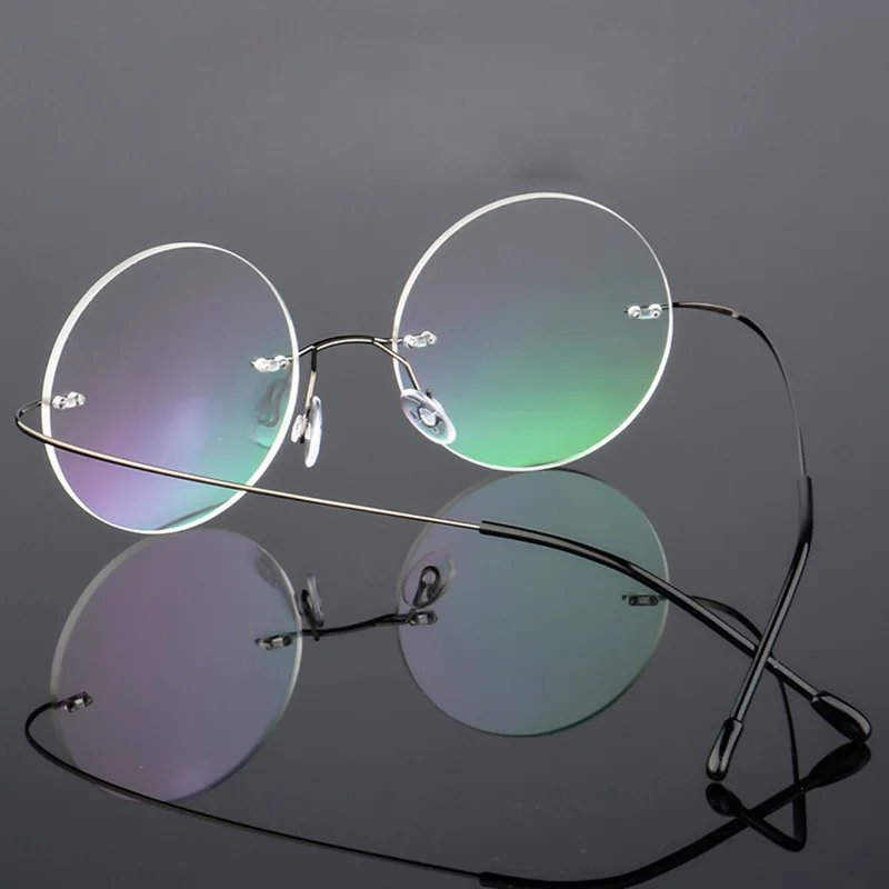 Оправа для очков без оправы титановые женские мужские круглые очки для коррекции зрения при близорукости металлические оправы для очков ультралегкие